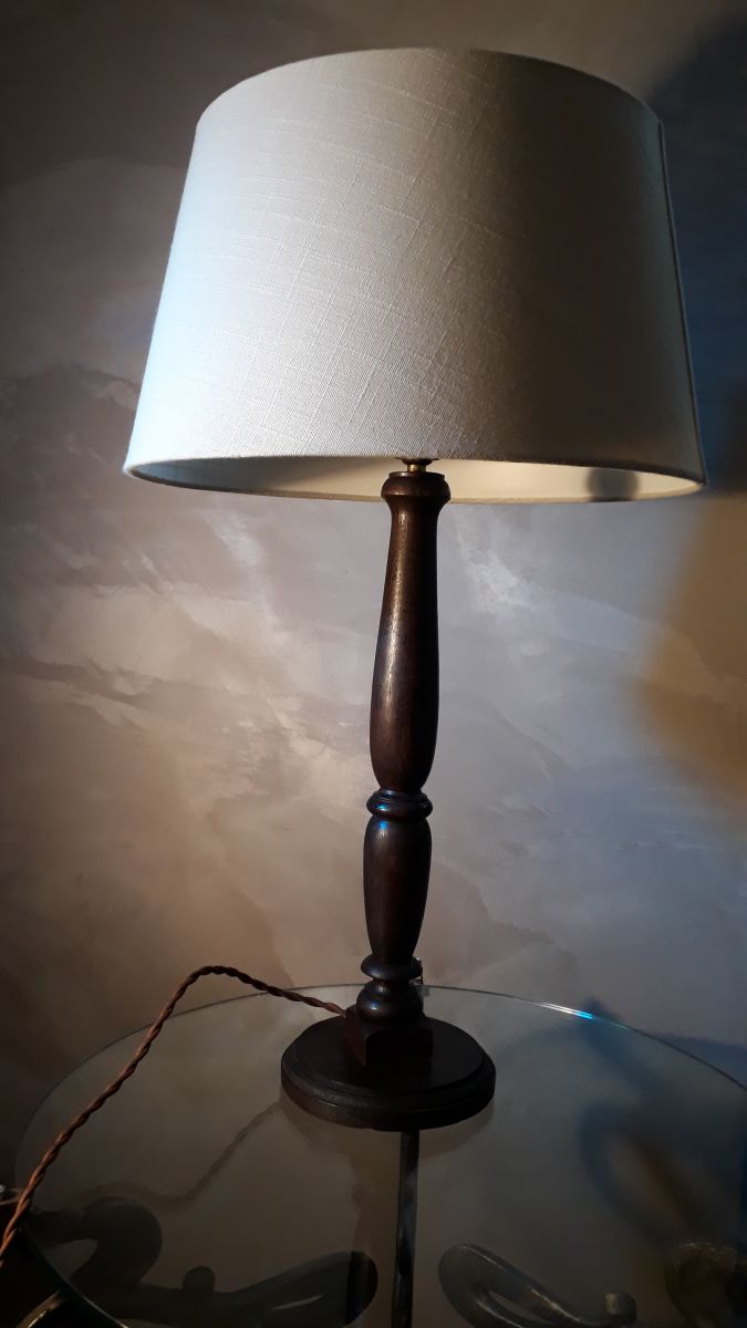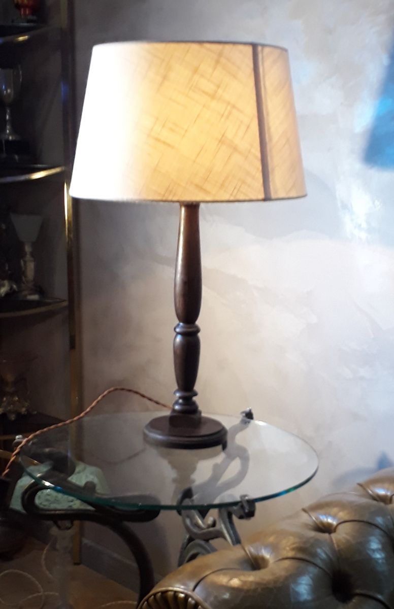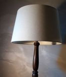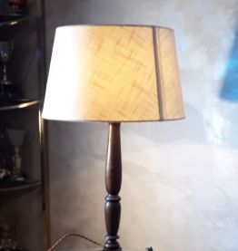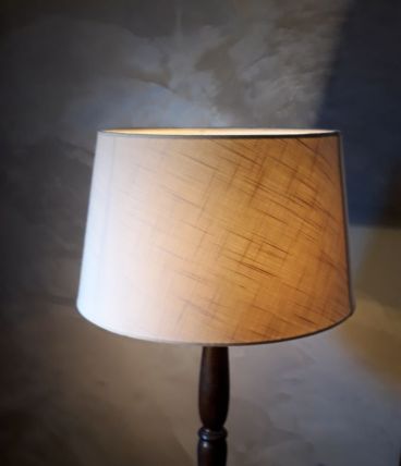 grande lampe pied tourné chene teinté ébène 1970 abat jour