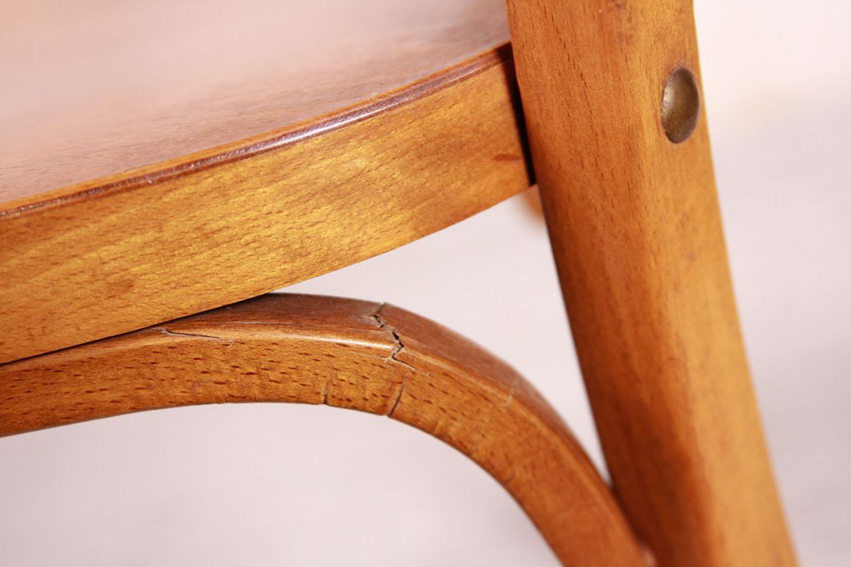 Chaises de bistrot, modèle rare. simplicité, estampille a l'encre tampon, parfois un document papier. Joli finition écrou doré.