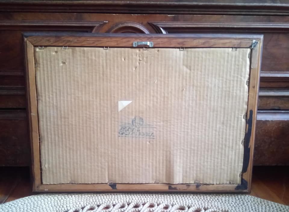 Le cadre est vendu dans jus avec les marques du temps sur le bois du cadre qui racontent aussi son histoire.