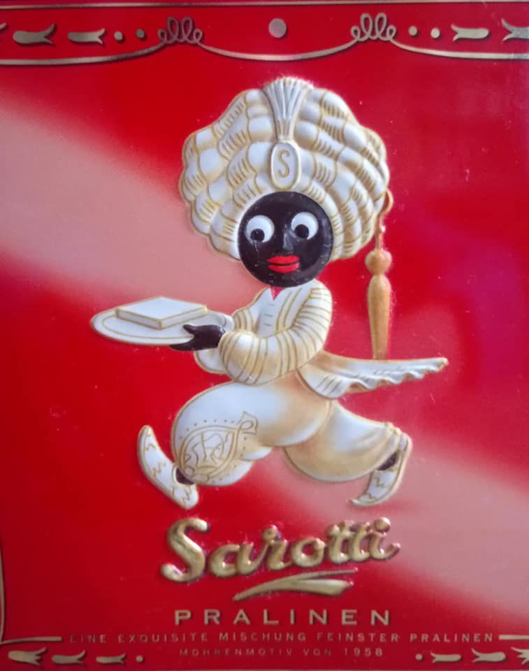 Le Sarotti-Mohr, le porteur noir de plateau a été imaginé en 1918 pour le 50ème anniversaire de la marque. En 2004, pour éviter les accusations de racisme, le Blackmoor a été transformé en "mage" de couleur de peau dorée.