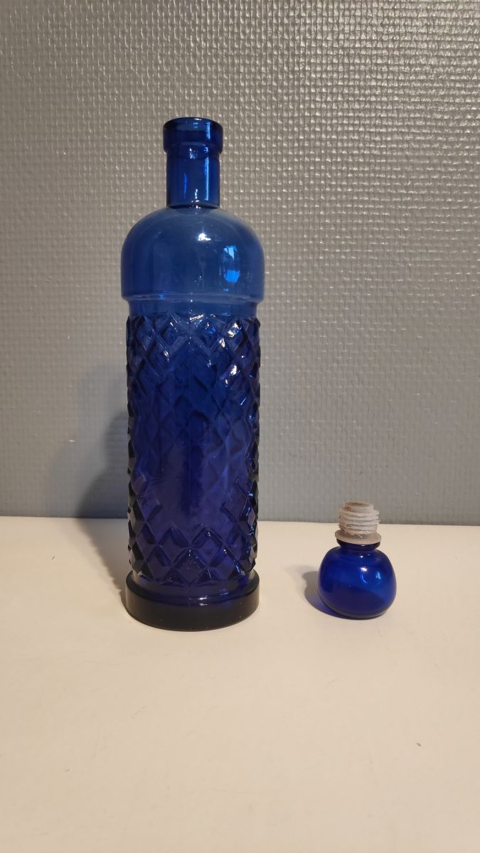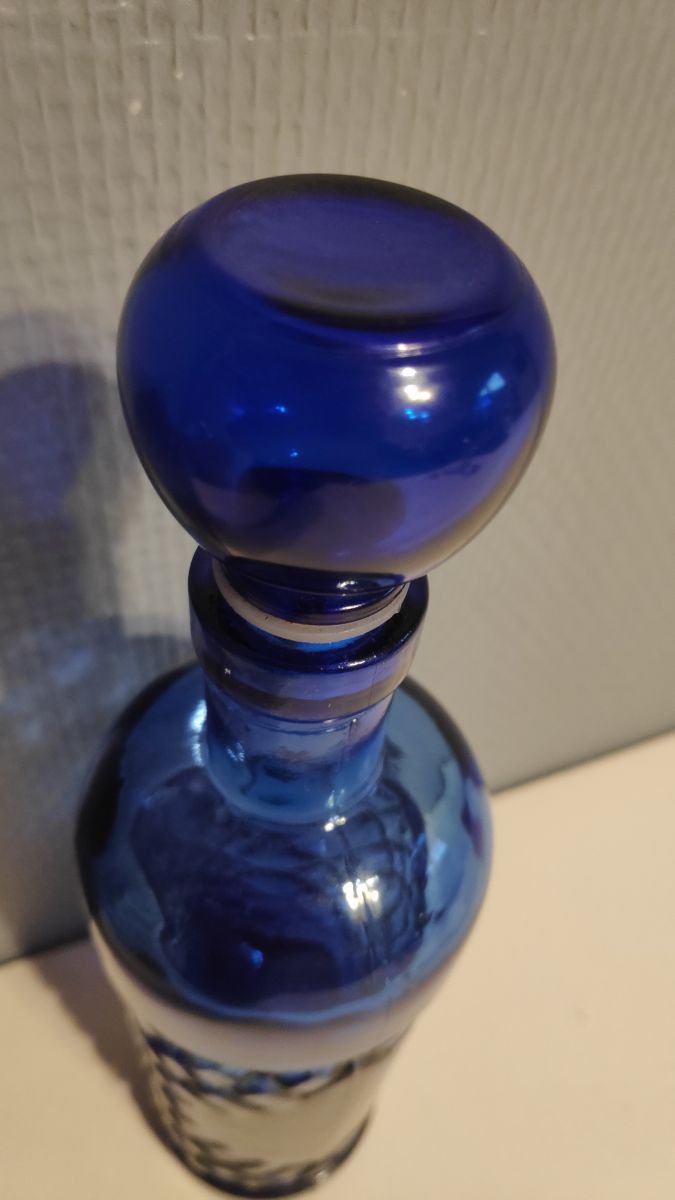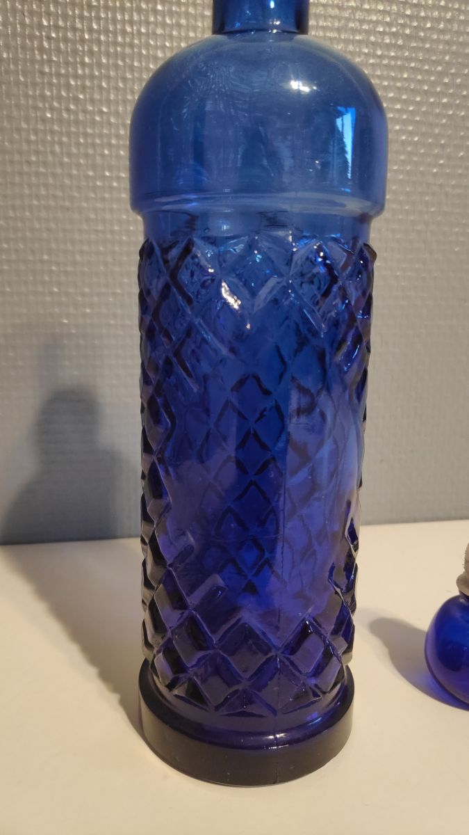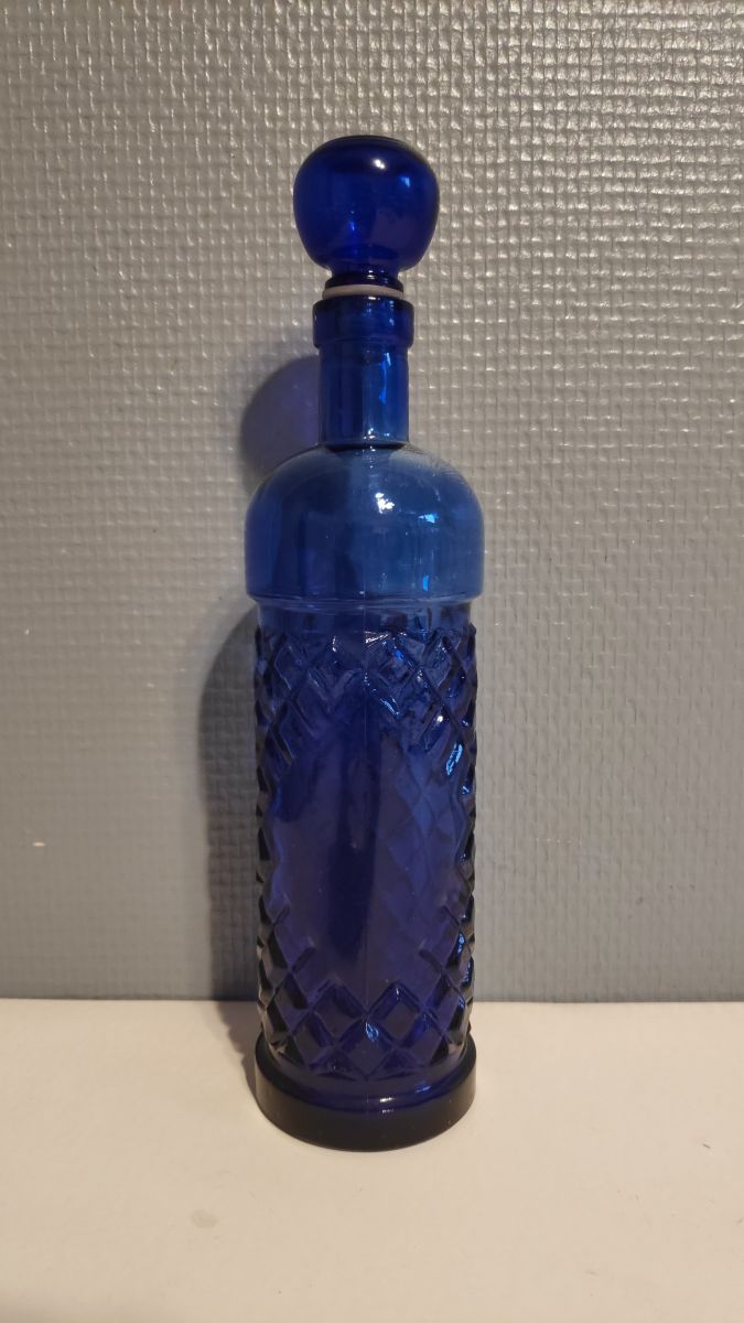 carafe en verre bleu avec bouchon