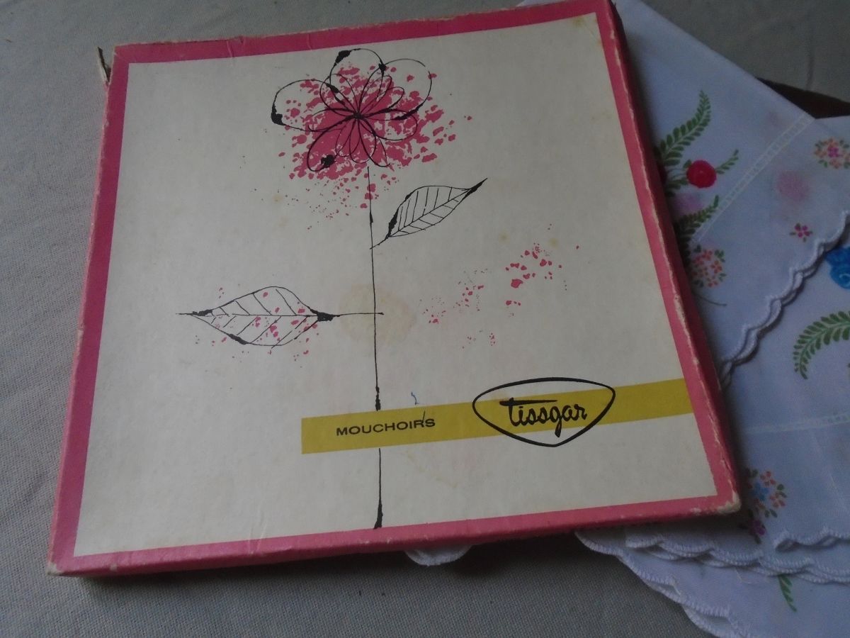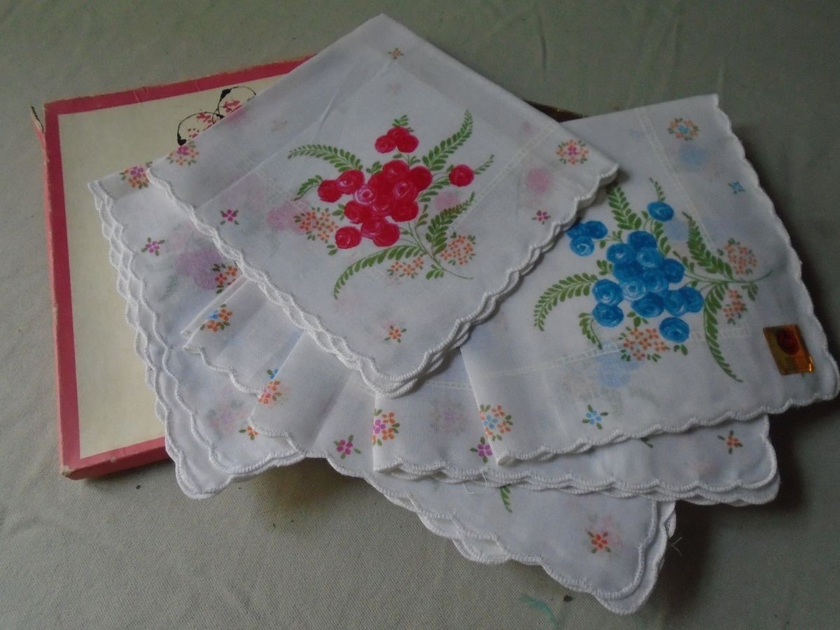 6 mouchoirs en fin coton blanc peints, décor roses anciennes 30cm x 30 cm