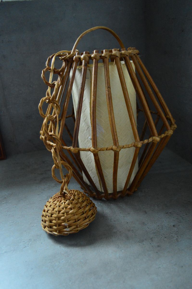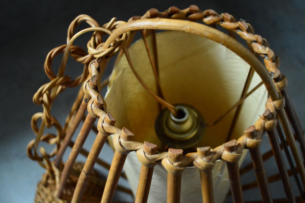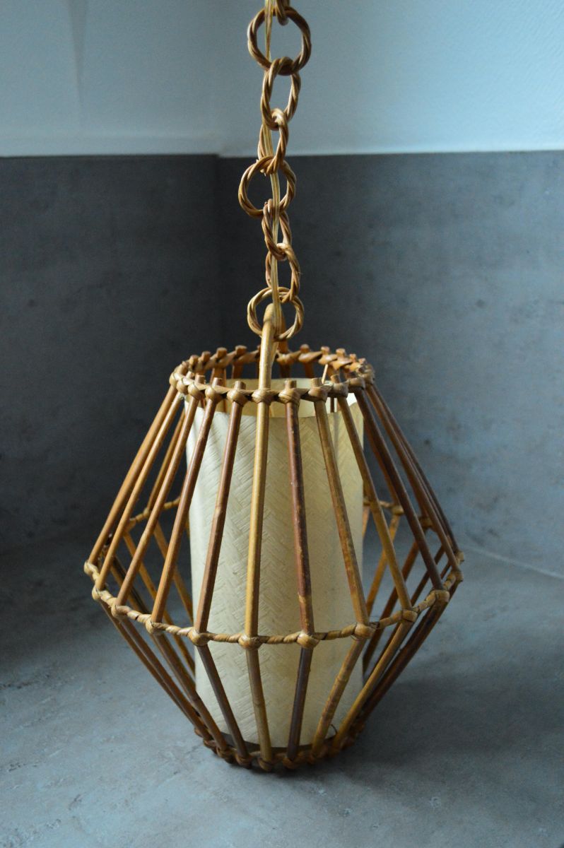 Suspension vintage en rotin des années 50/60 du style Louis sognot. Avec douille à baïonnette.