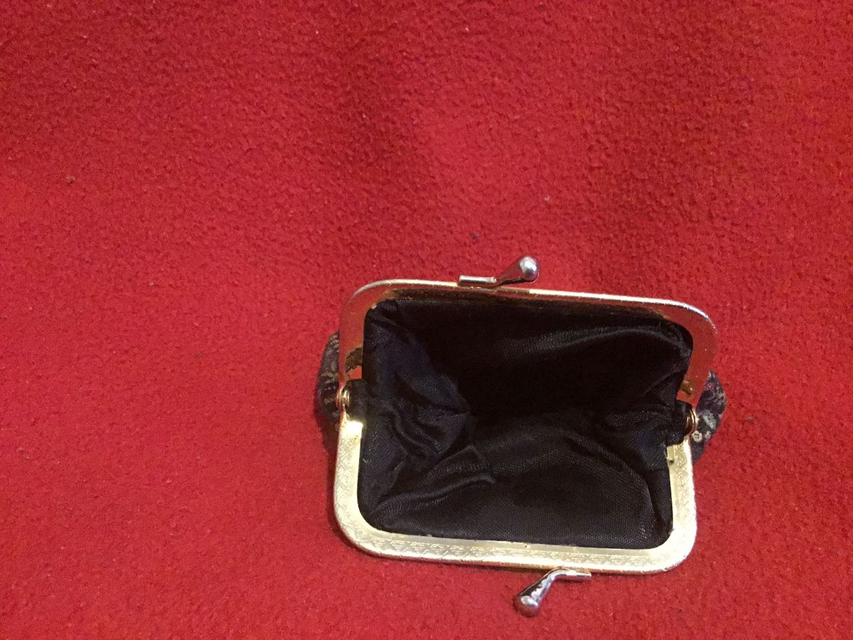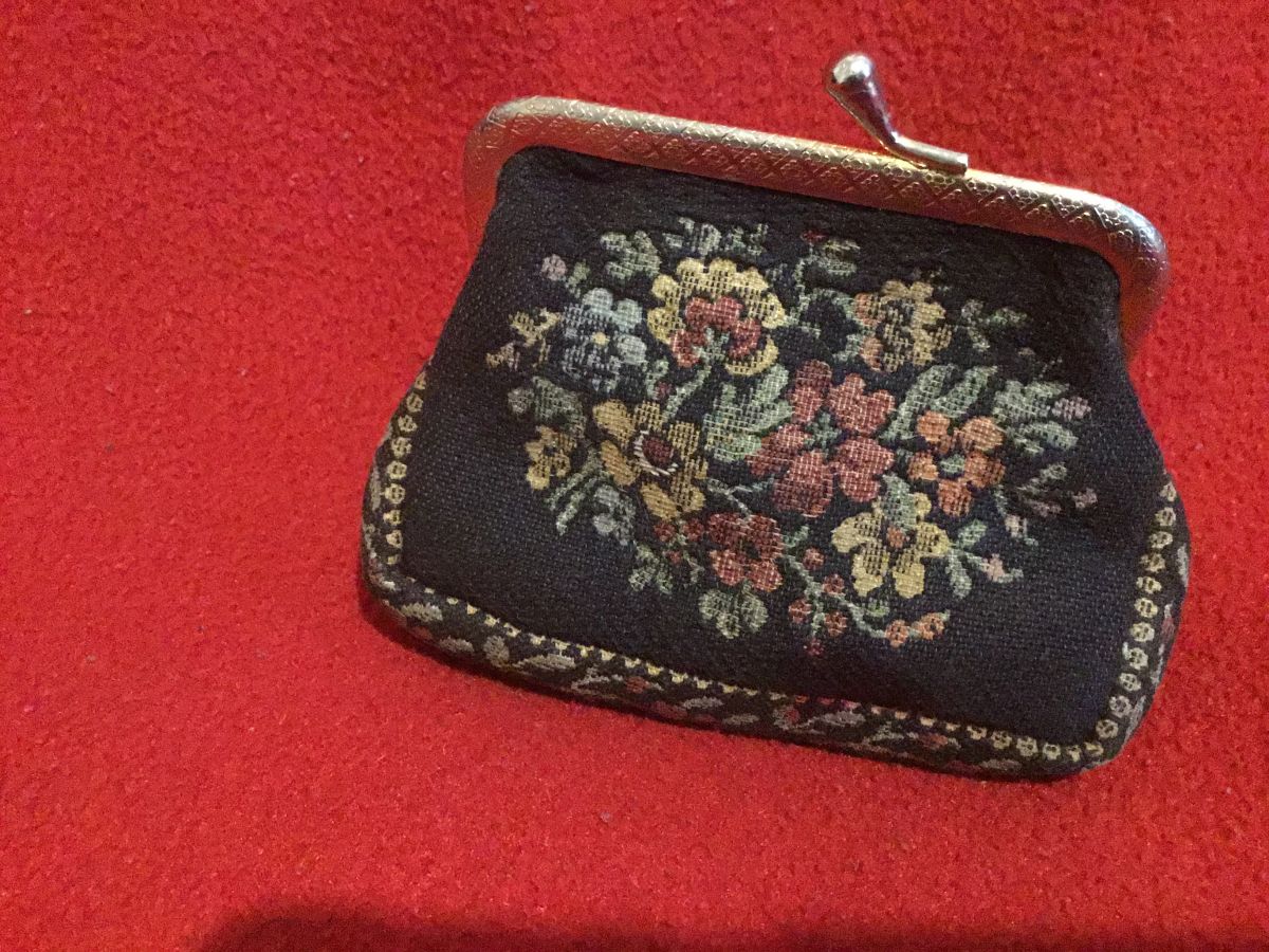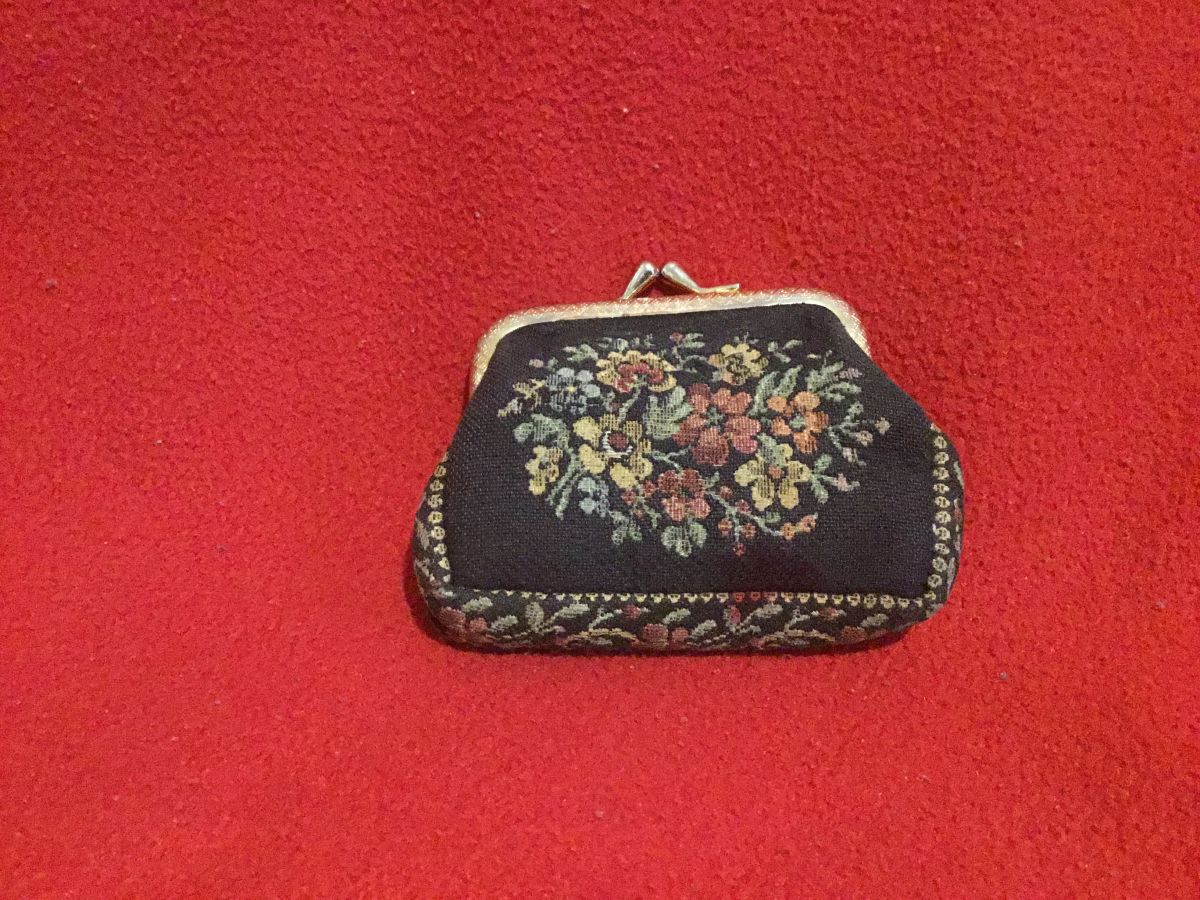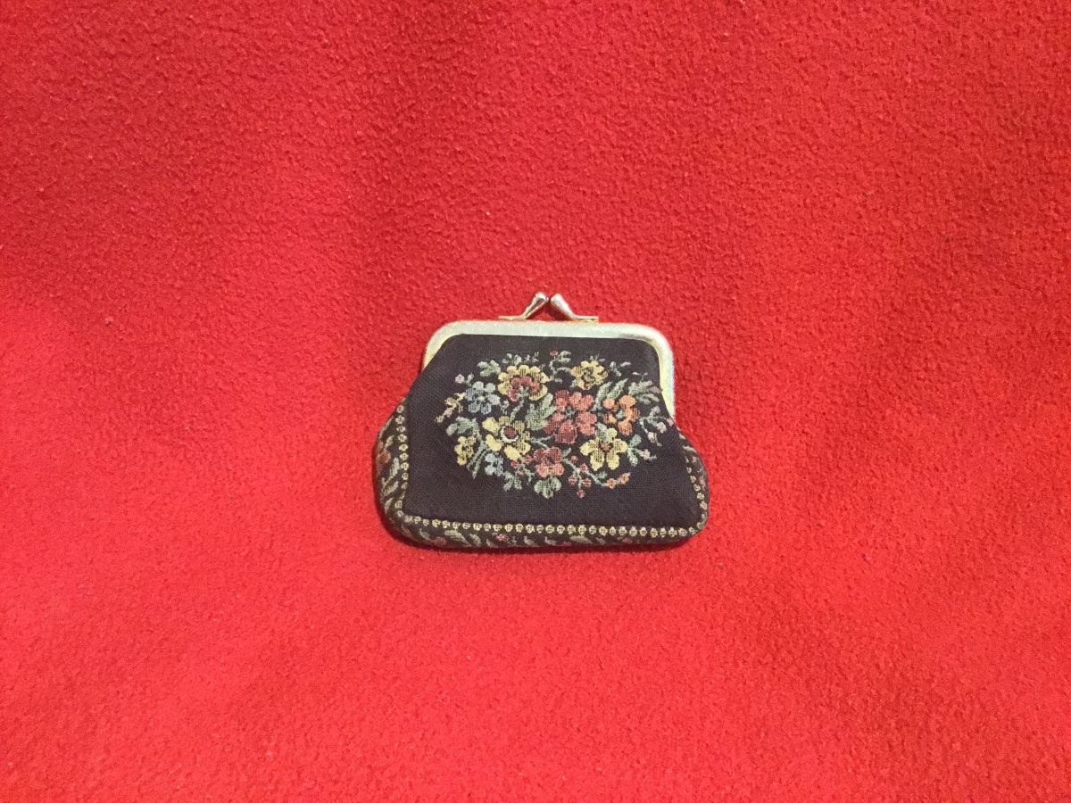 Porte monnaie à fleurs vintage ,il y a une petite tâche rouge en bas du tissu à voir sur la photo.