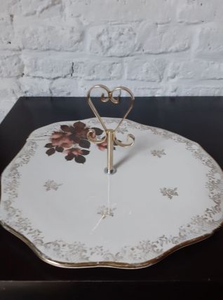 Plat fromage ou gateaux de Marque Opalor en faience ancien a note quelque trace legere d usage sur le tour de plat .