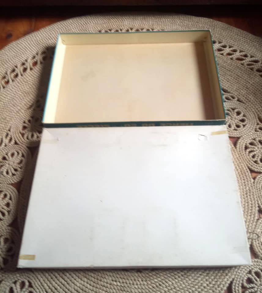 La boite présente quelques marques du temps (un coin du couvercle est scotché, le fond de la boite est légèrement déchiré et scotché - voir photos),