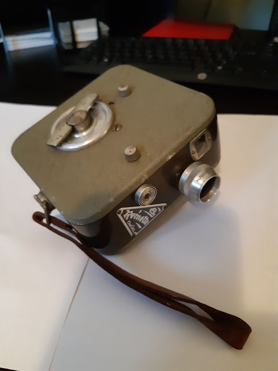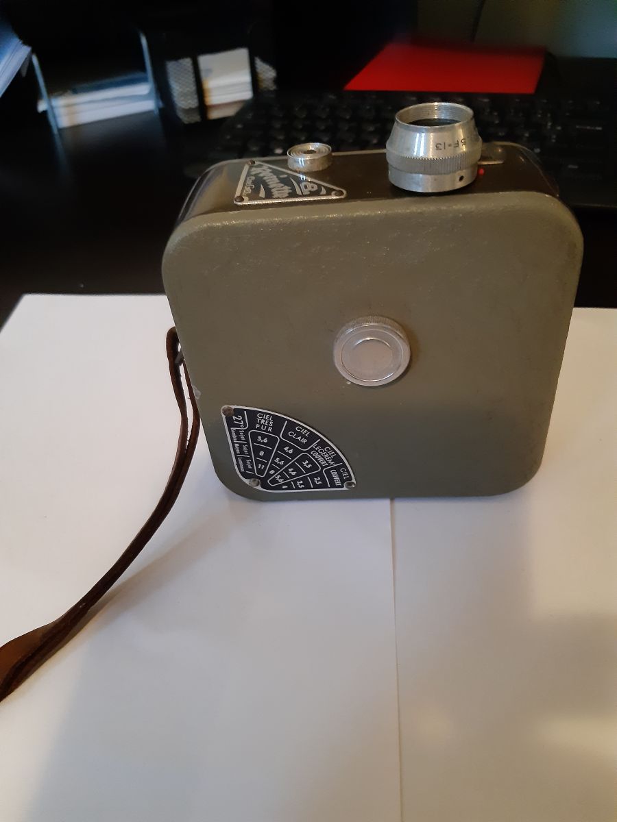 Cette caméra très simple et dépouillée est équipée d’un viseur de Galilée avec un objectif à vis non standard Roussel Kinor f/2,5 de 12,5mm à mise au point fixe.