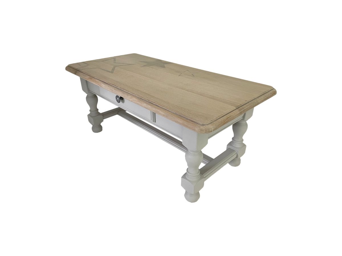 Une table basse en bois massif, subtilement mise à jour avec une peinture à la craie Paris Grey avec de la cire claire.