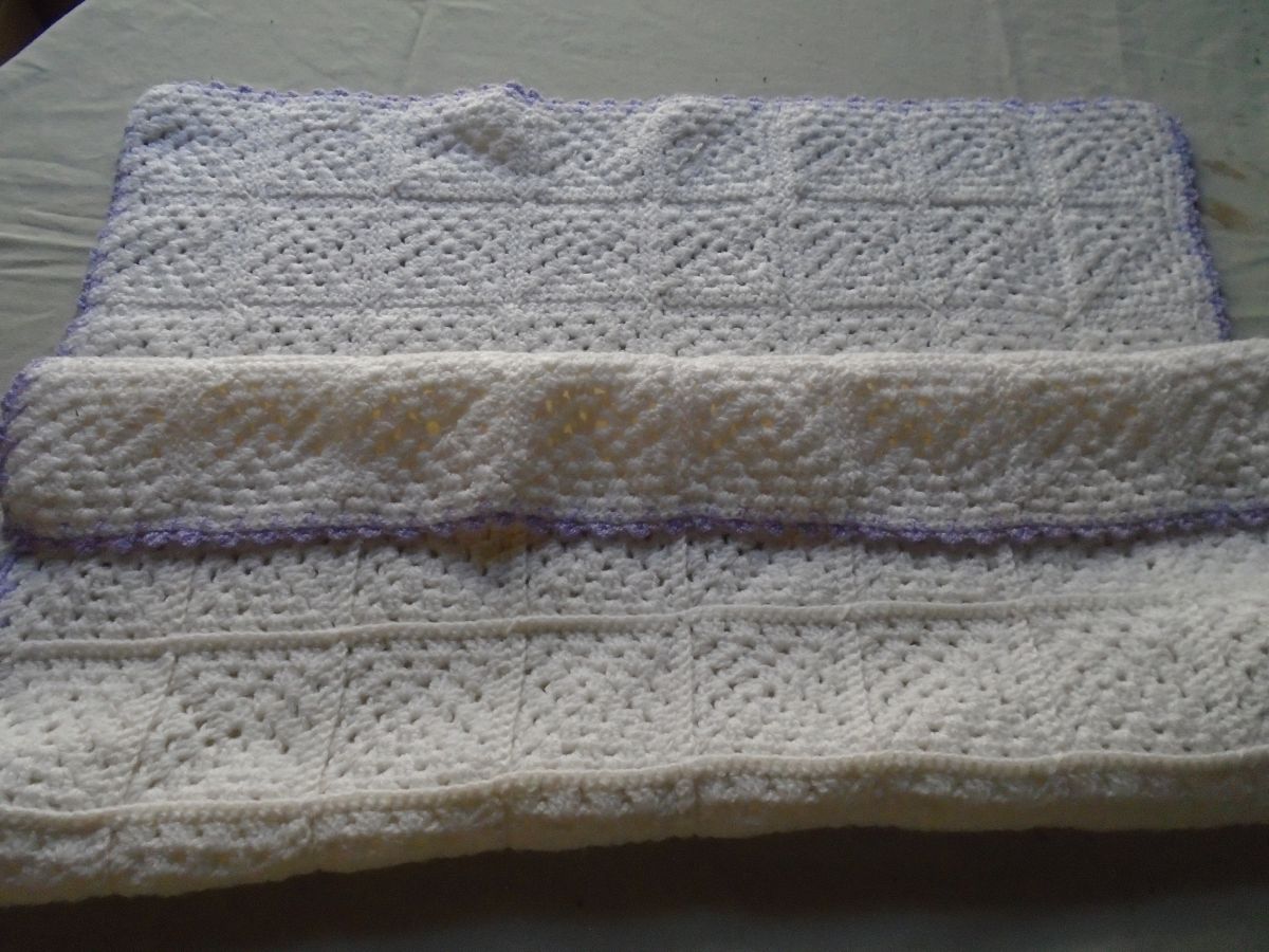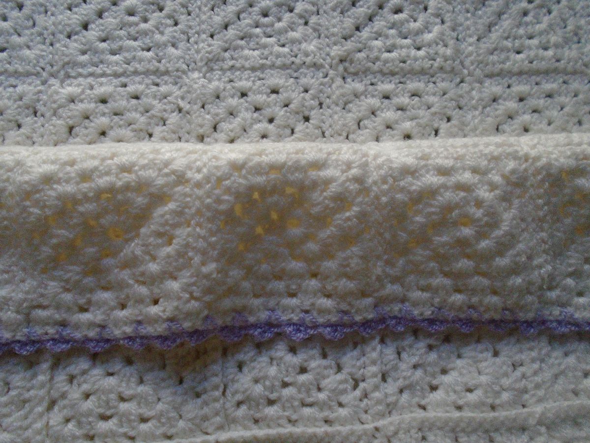 Plaid couverture en crochet blanc bordé de parme pour bébé/berceau
