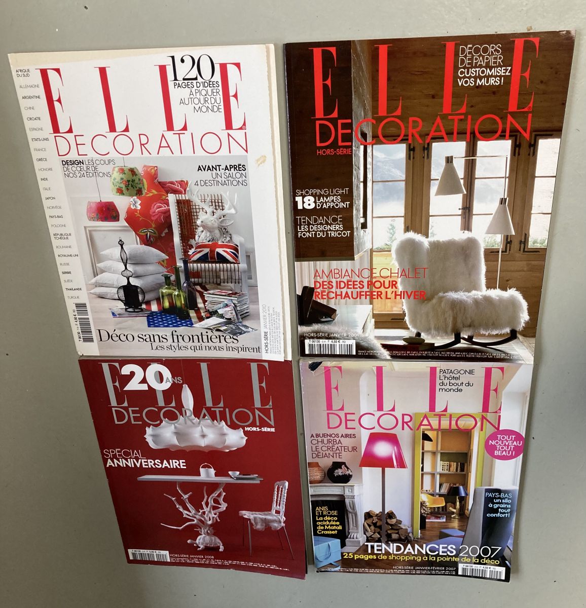 Elle Décoration je vends les 4 hors séries de 2007, 2008, 2009 et 2010 pour 12 € en bonne état .