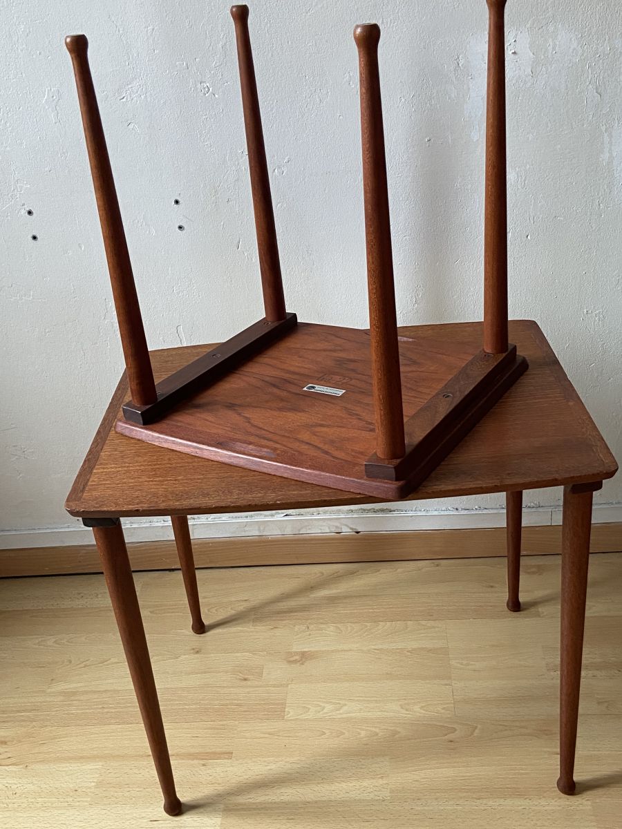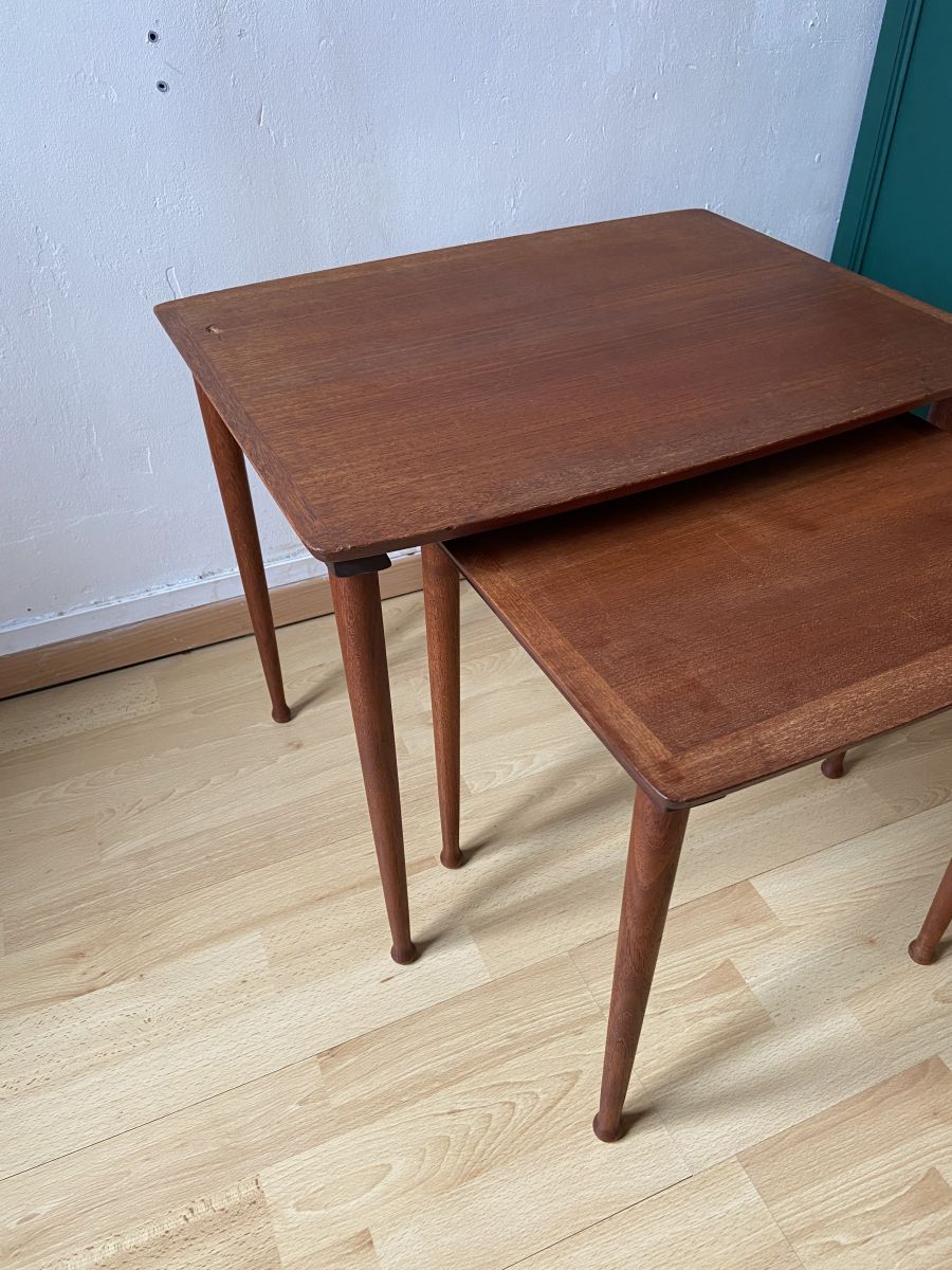 2 tables gigognes en palissandre de Rio années 50/60. Made in Danemark, Edition Mobelintarsia (étiquette présente au dessous), très bel état, ligne très élégante Piètement dévissable