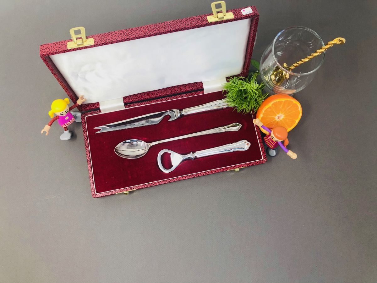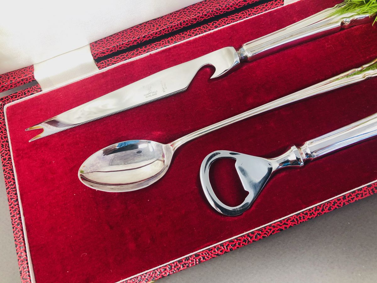 ???? Un coffret en bon état comprenant un couteau, une cuillère pour mélanger un décapsuleur.