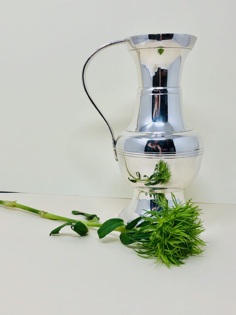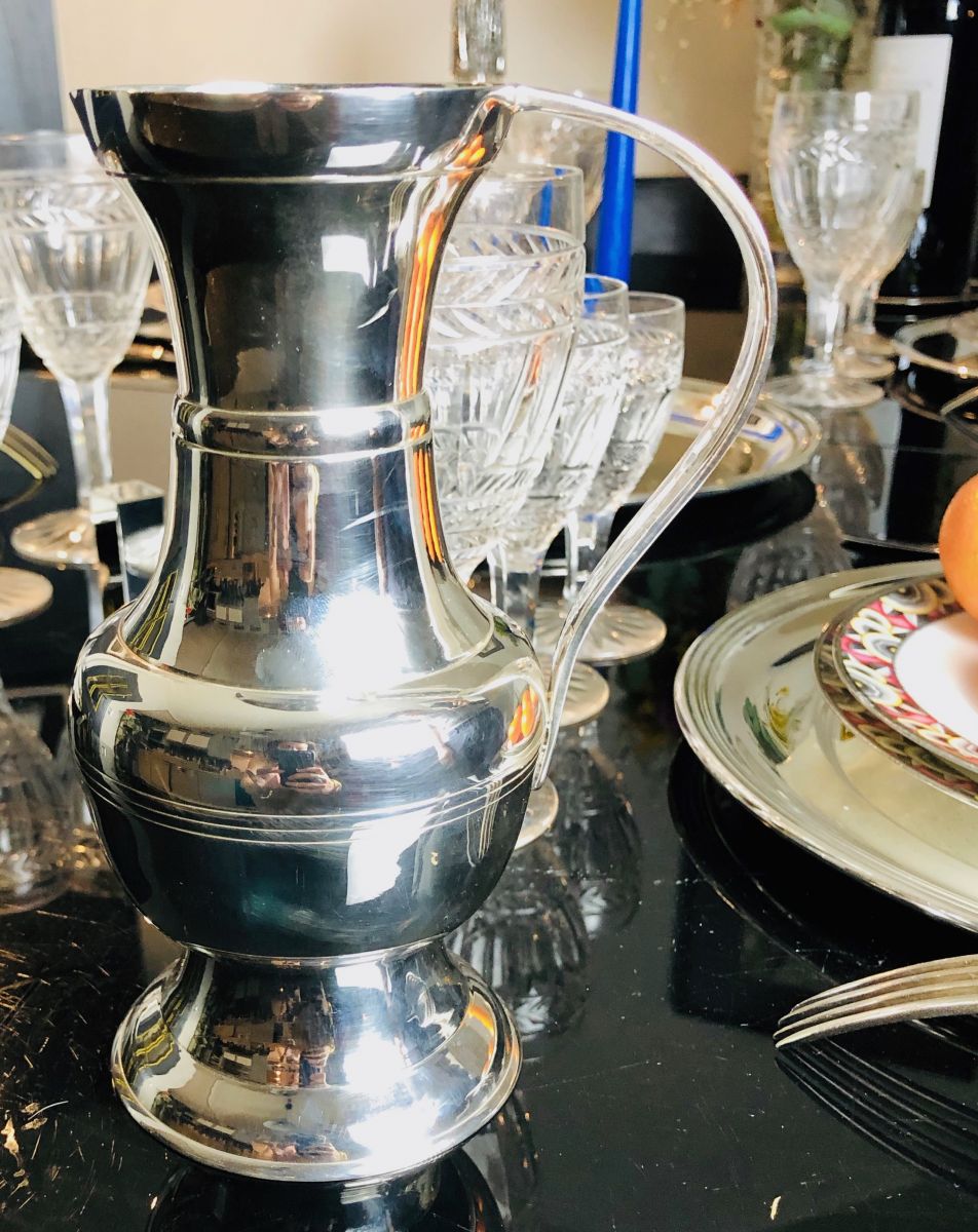 Cruche à eau/vin blanc en métal argenté