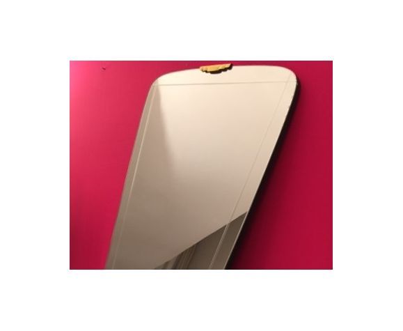 Élegant miroir vintage, au format rétroviseur datant des années 1950 environ. Belles dimensions. Rainures fines.