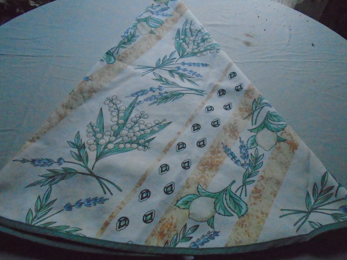 Nappe ronde 6 couverts, tissu anti tache, décor fleurs de muguet