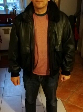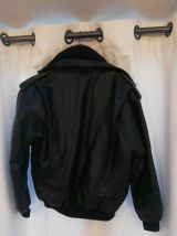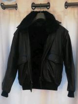 Blouson cuir type Aviateur,années 80.Avec doublure intérieure détachable.En bon état.Taille L, indiqué 104-108. Pas de défaut, ni d'accident.La doublure a été peu mise.