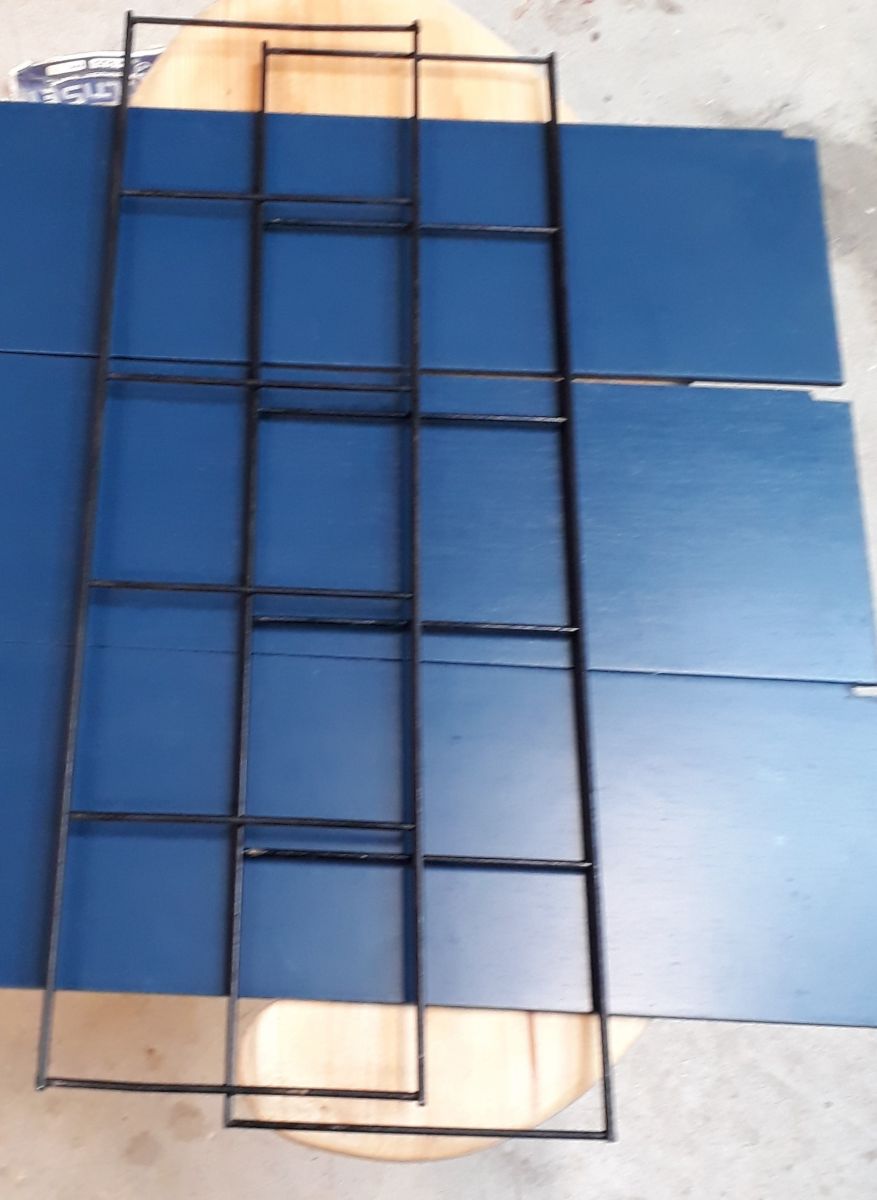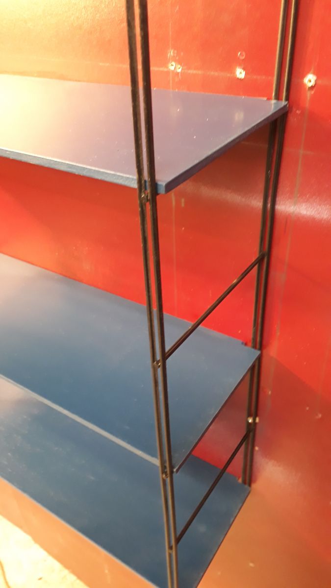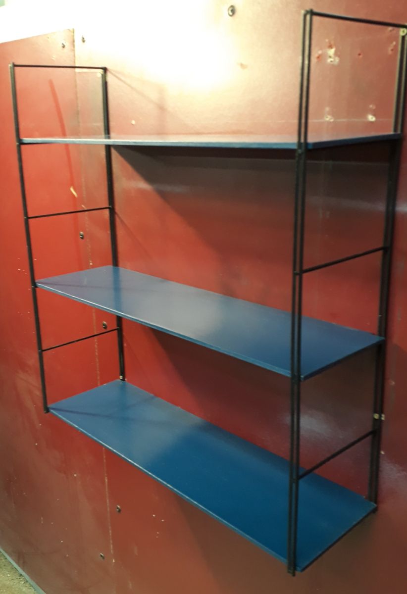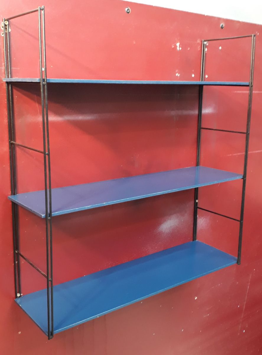 Étagère string 60x5 8x16 cm. Style tomado trois plateaux bois laqué bleu nuit