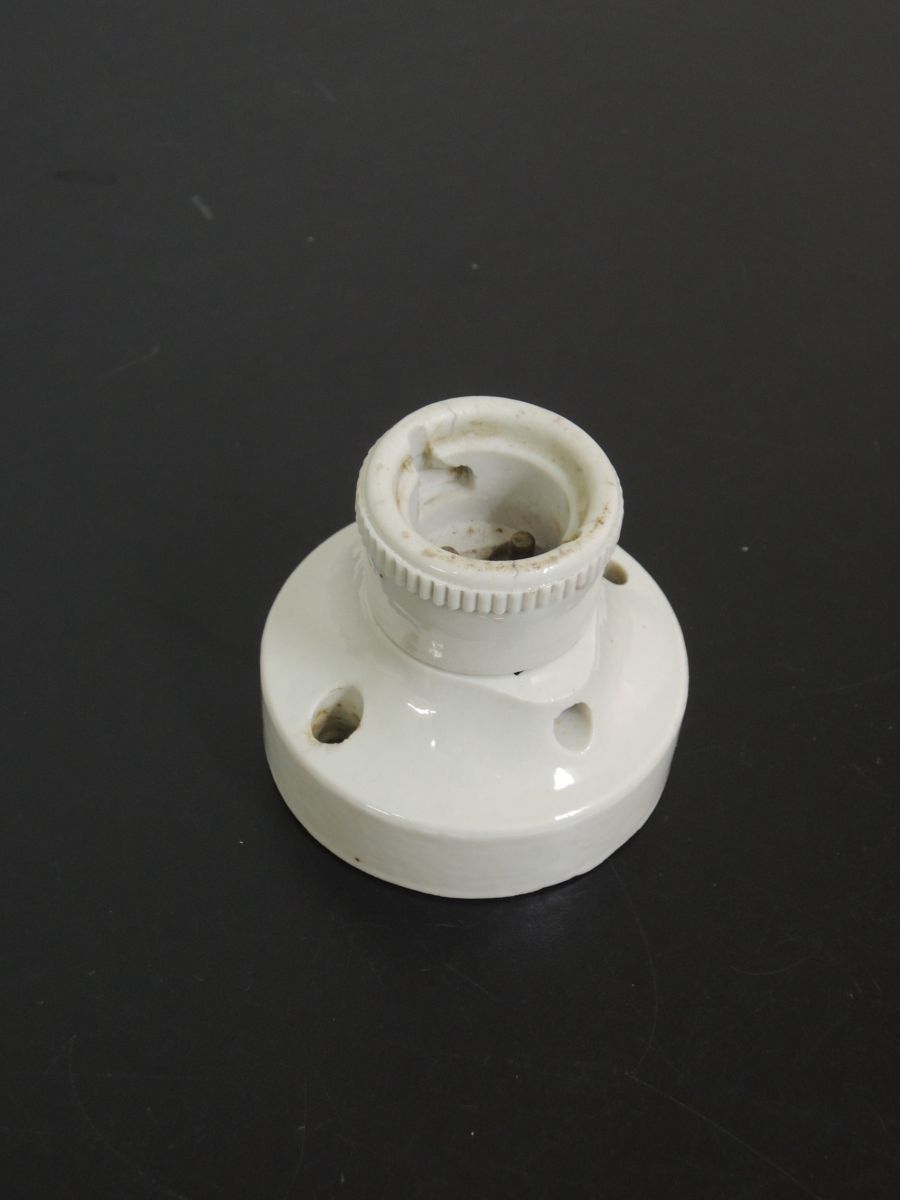 Applique de cave en céramique pouvant être installé en plafond comme en mural, douille à baïonnette ( de type B22). Traces d'usage. Vendue non câblée. 3 exemplaires disponibles, prix indiqué par exemplaire