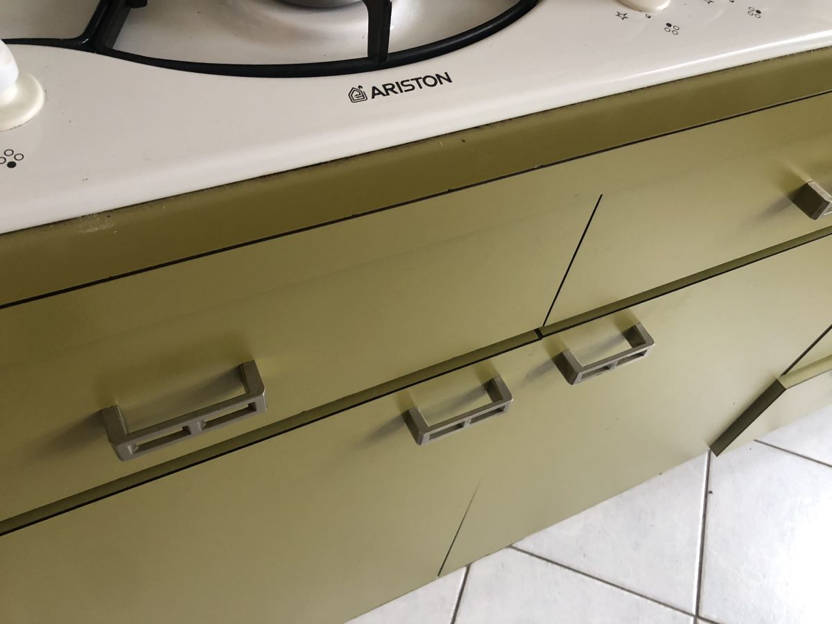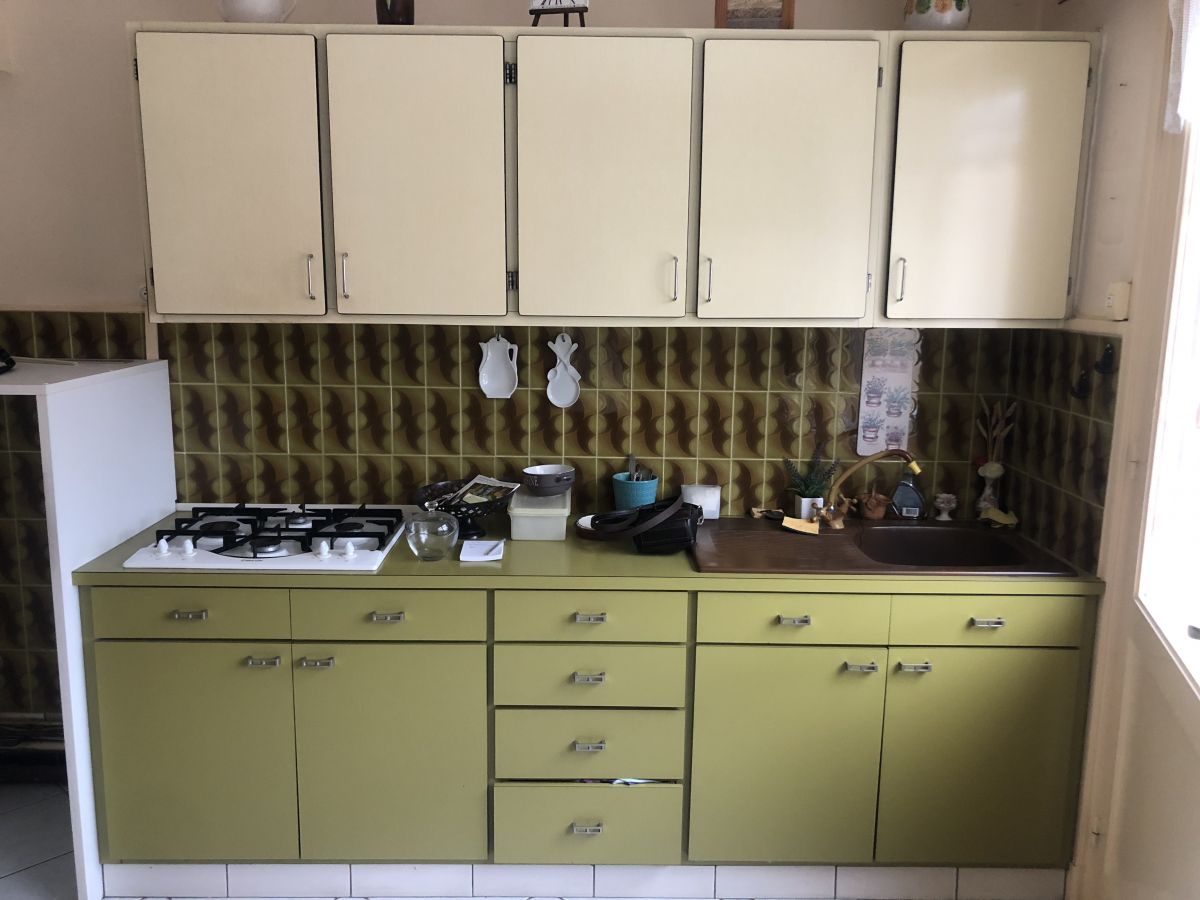 3 meubles de cuisine en formica, excellent état, datant des années 1960.