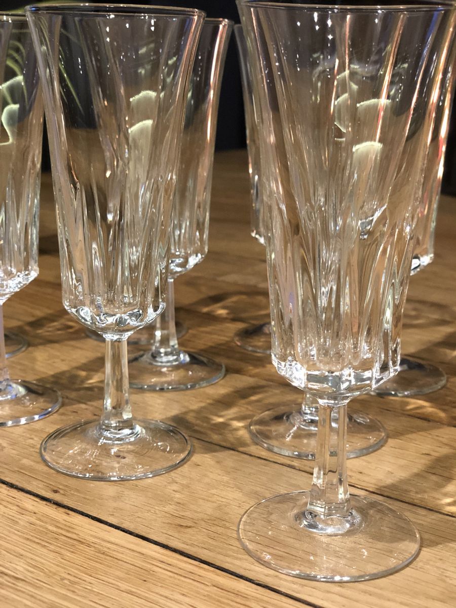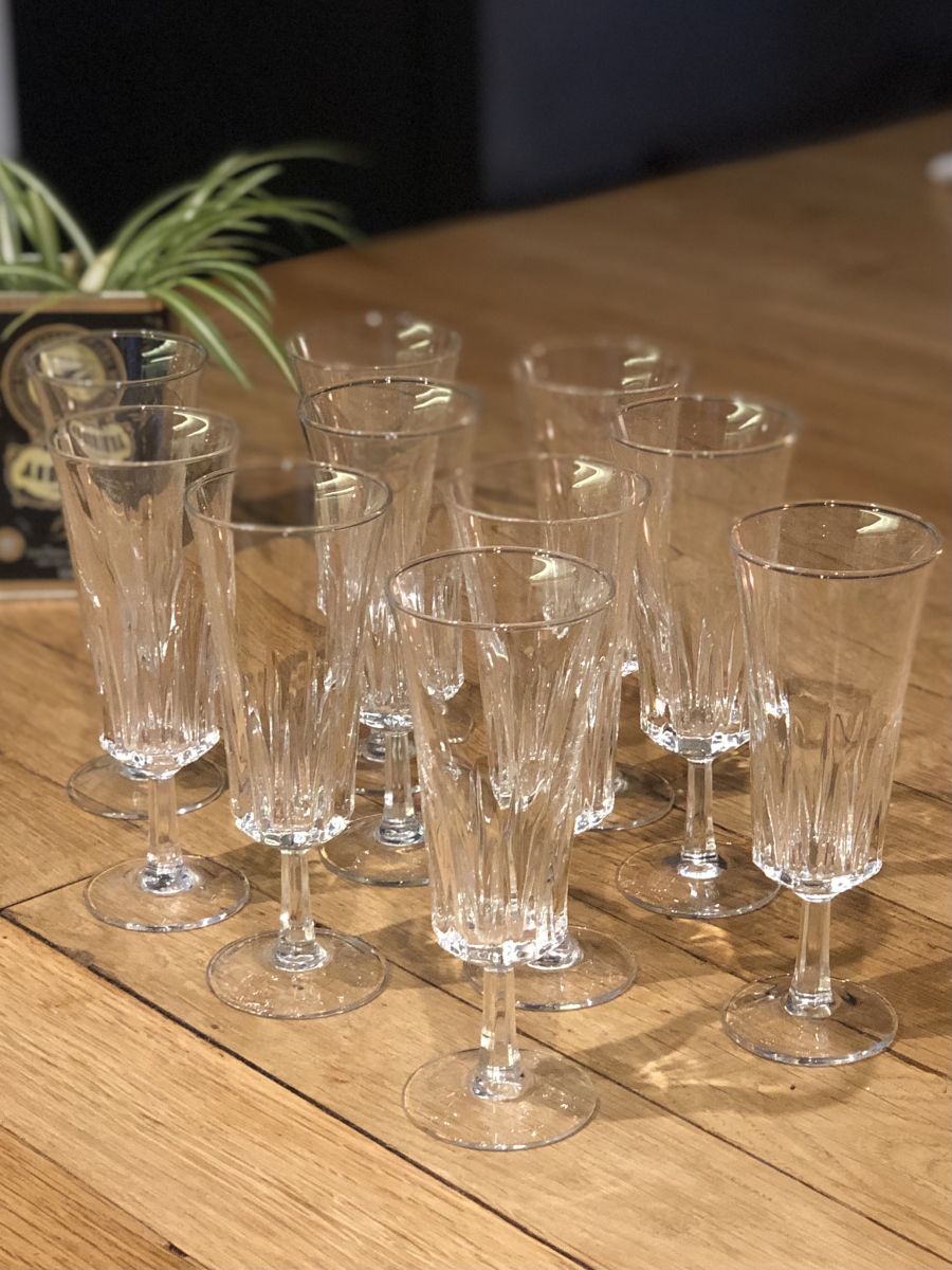 Ensemble de 10 coupes à champagne,éclat du cristal, comme neuves . Vintage, très chic. ????