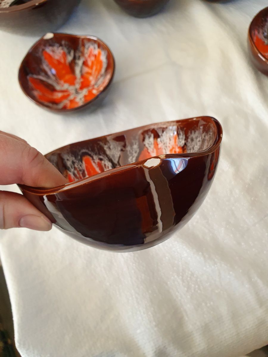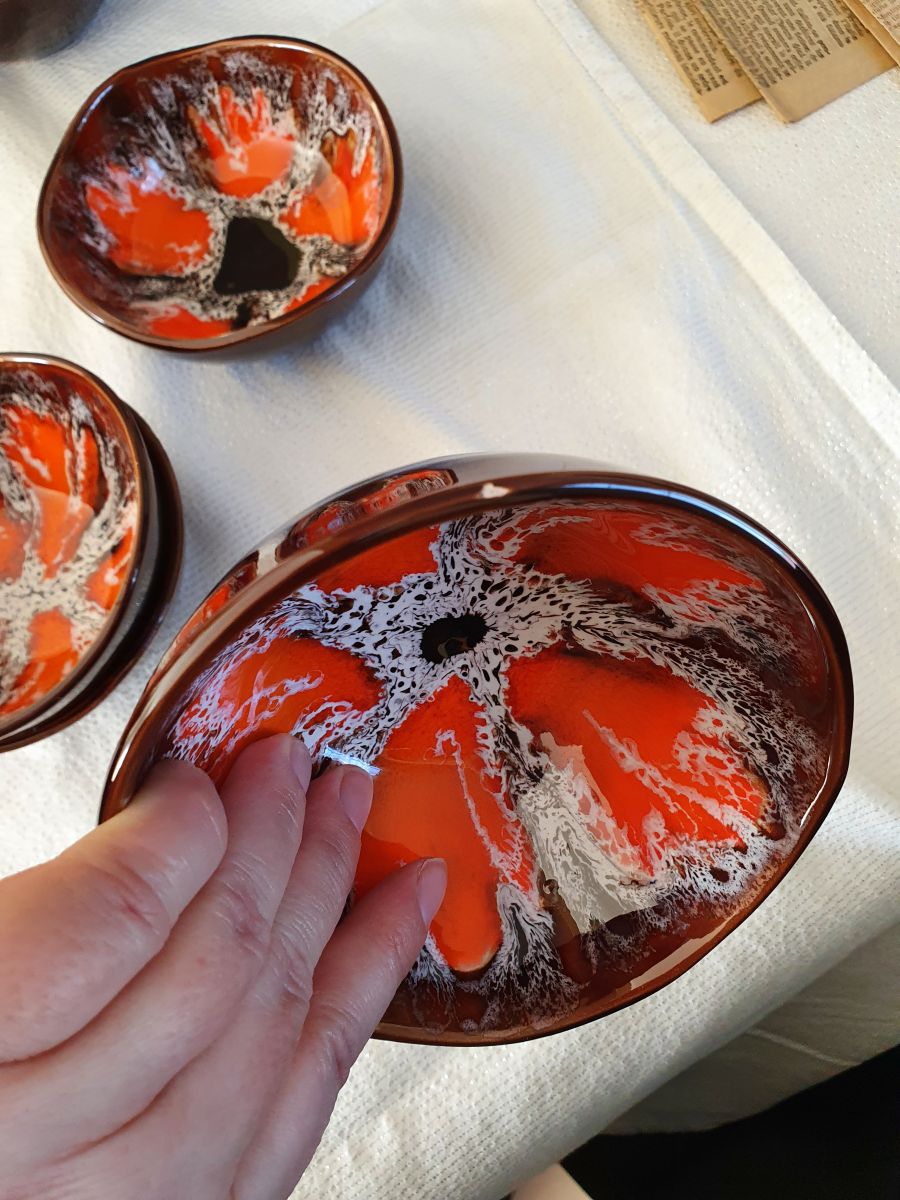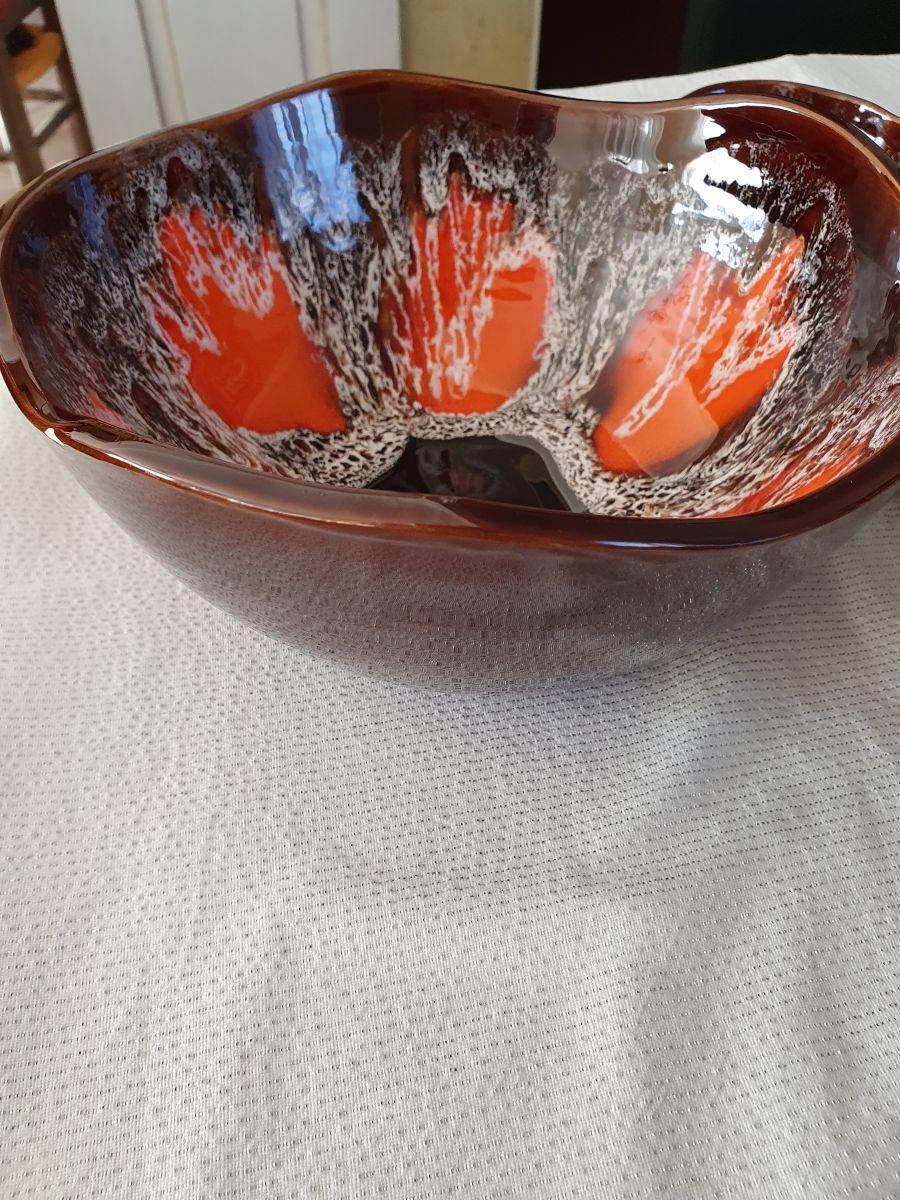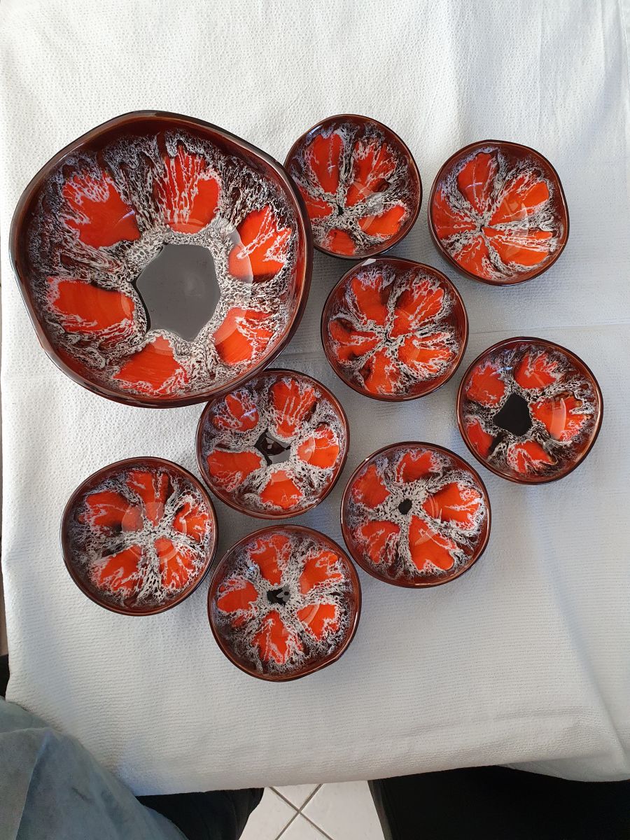 Service à dessert de 9 pièces. 2 coupelles présentent chacune un petit accident (voir photos) et sur le saladier.