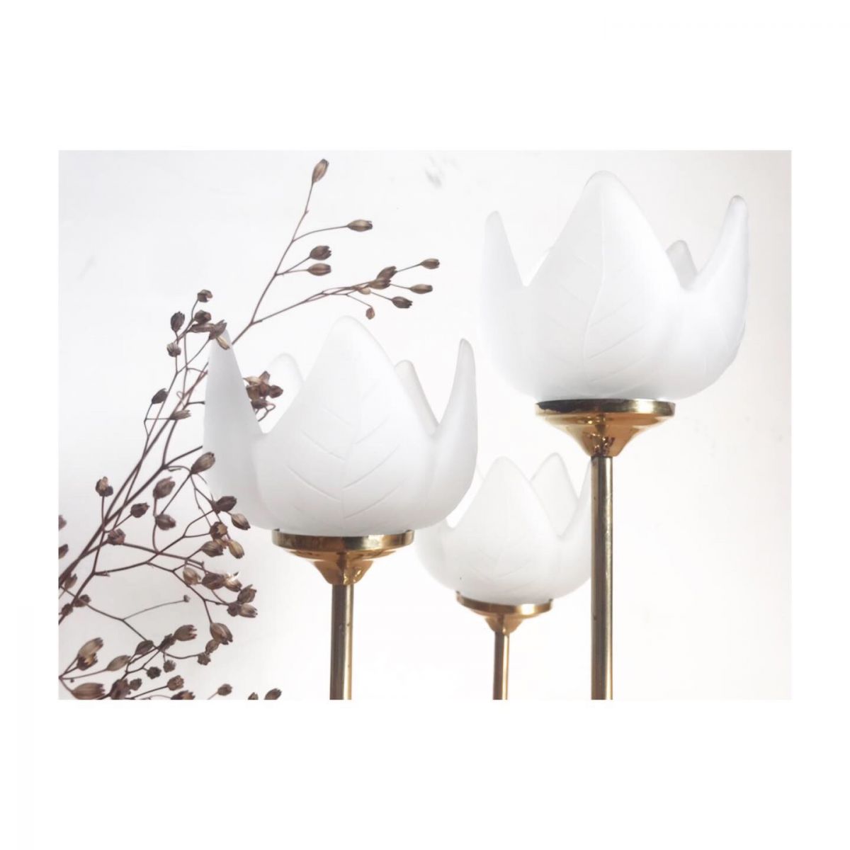 Les pieds sont en laiton et les fleurs en verre givré sont vissées sur le pied, le verre est délicatement ciselé.