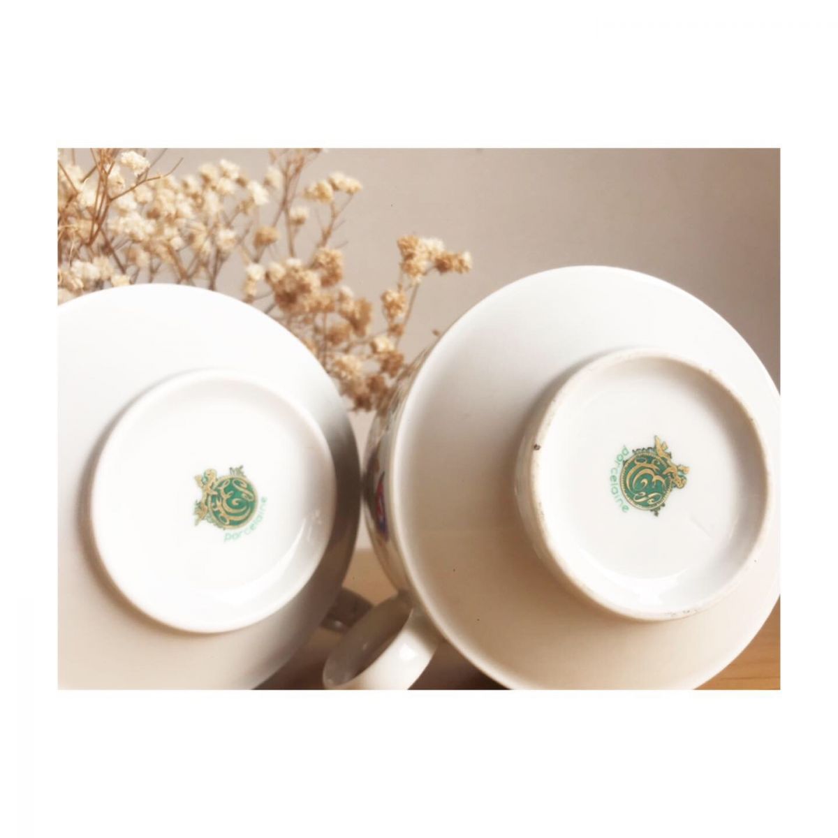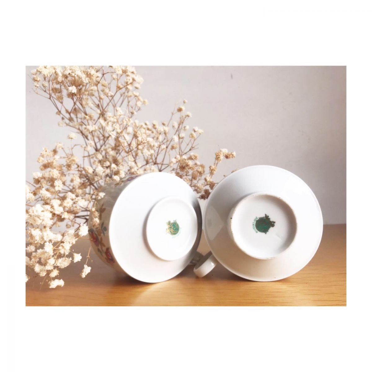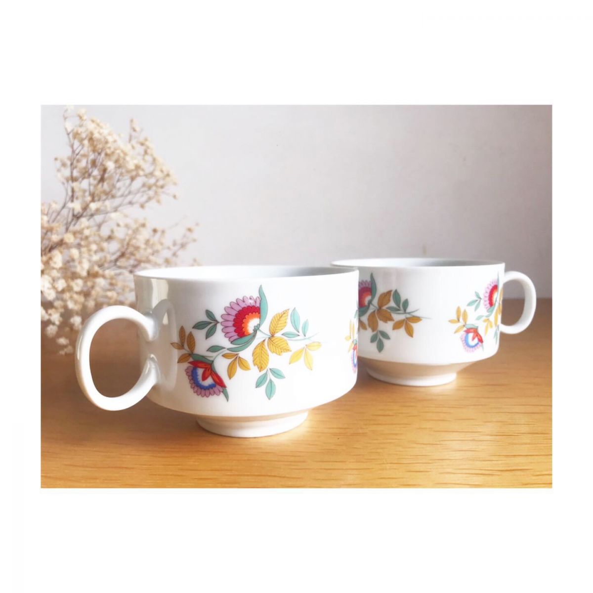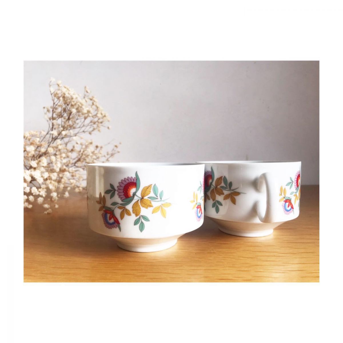 Deux très jolies tasses en porcelaine signées LES, dans le goût Bavaria/Winterling.