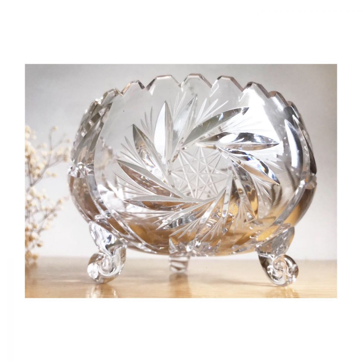 Superbe bonbonnière/coupe/vide-poches en cristal taillé, toute dentellée sur le rebord.