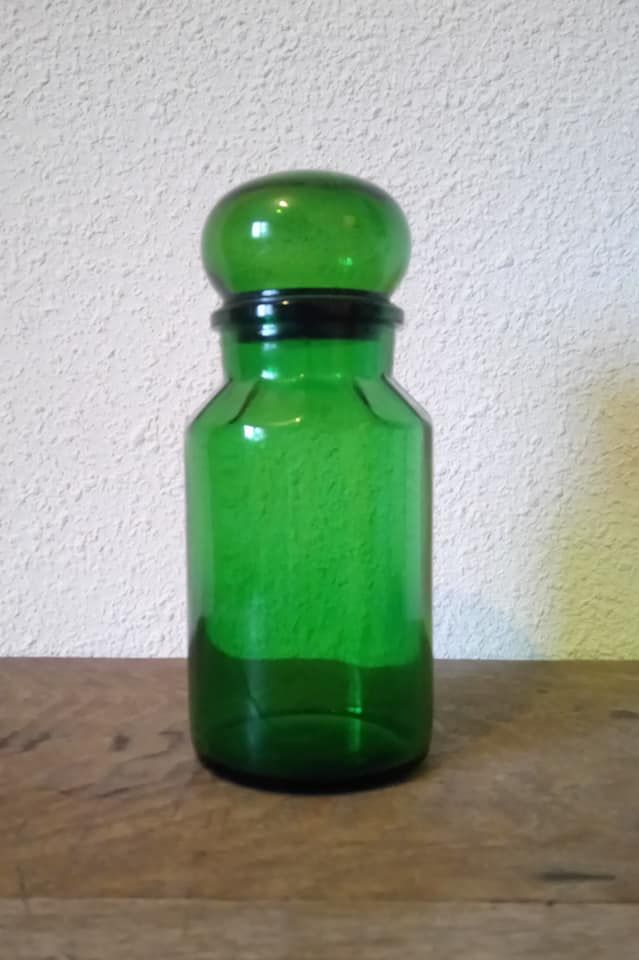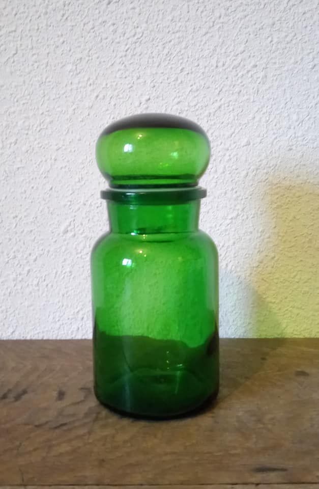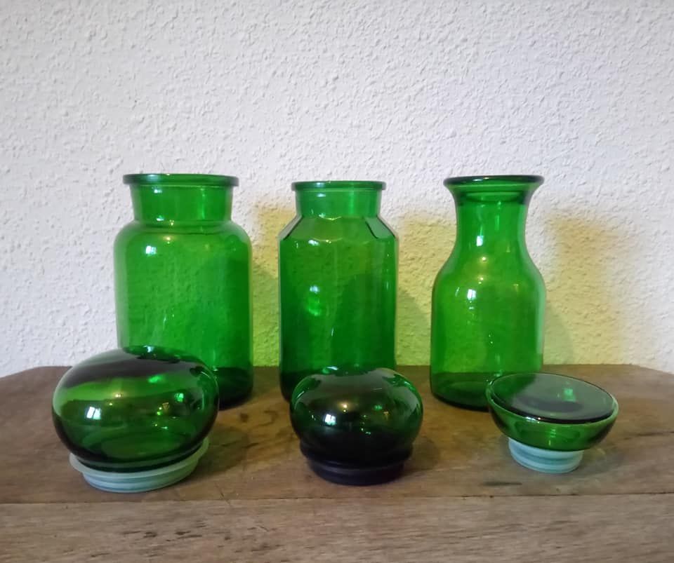 Trois jolis pots d'apothicaire en verre avec leurs couvercles hermétiques