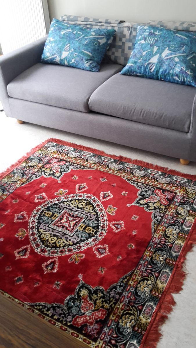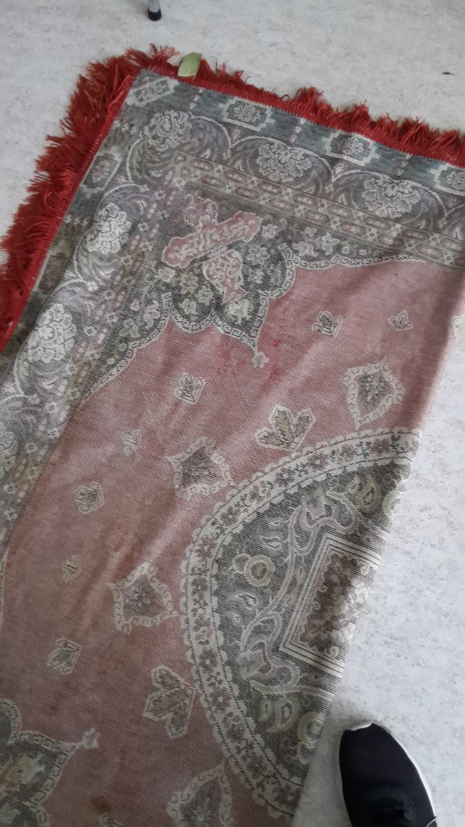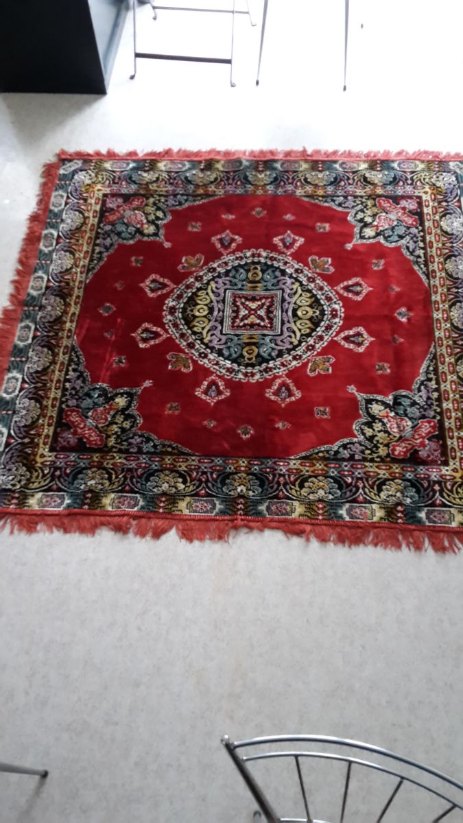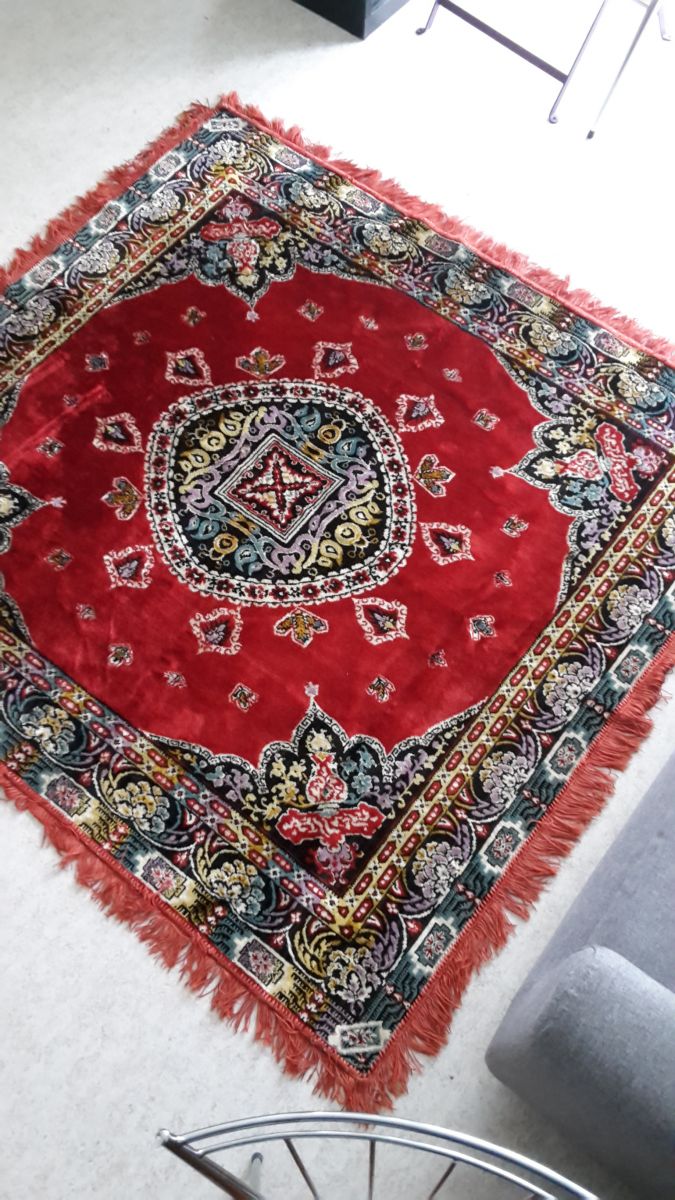 Tapis en coton vintage de fabrication française. de style oriental à mèches courtes.