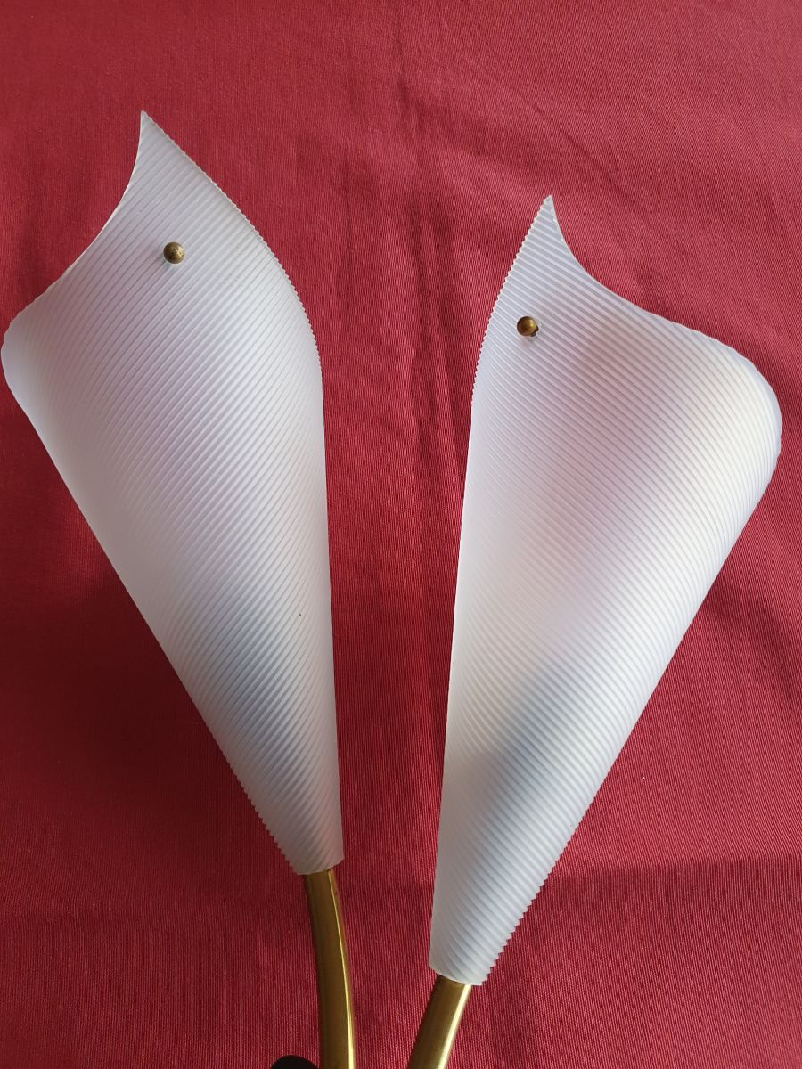abat-jour en forme de cornet en plastique rainuré. fente sur l'un des abat-jour à l'arrière donc non visible