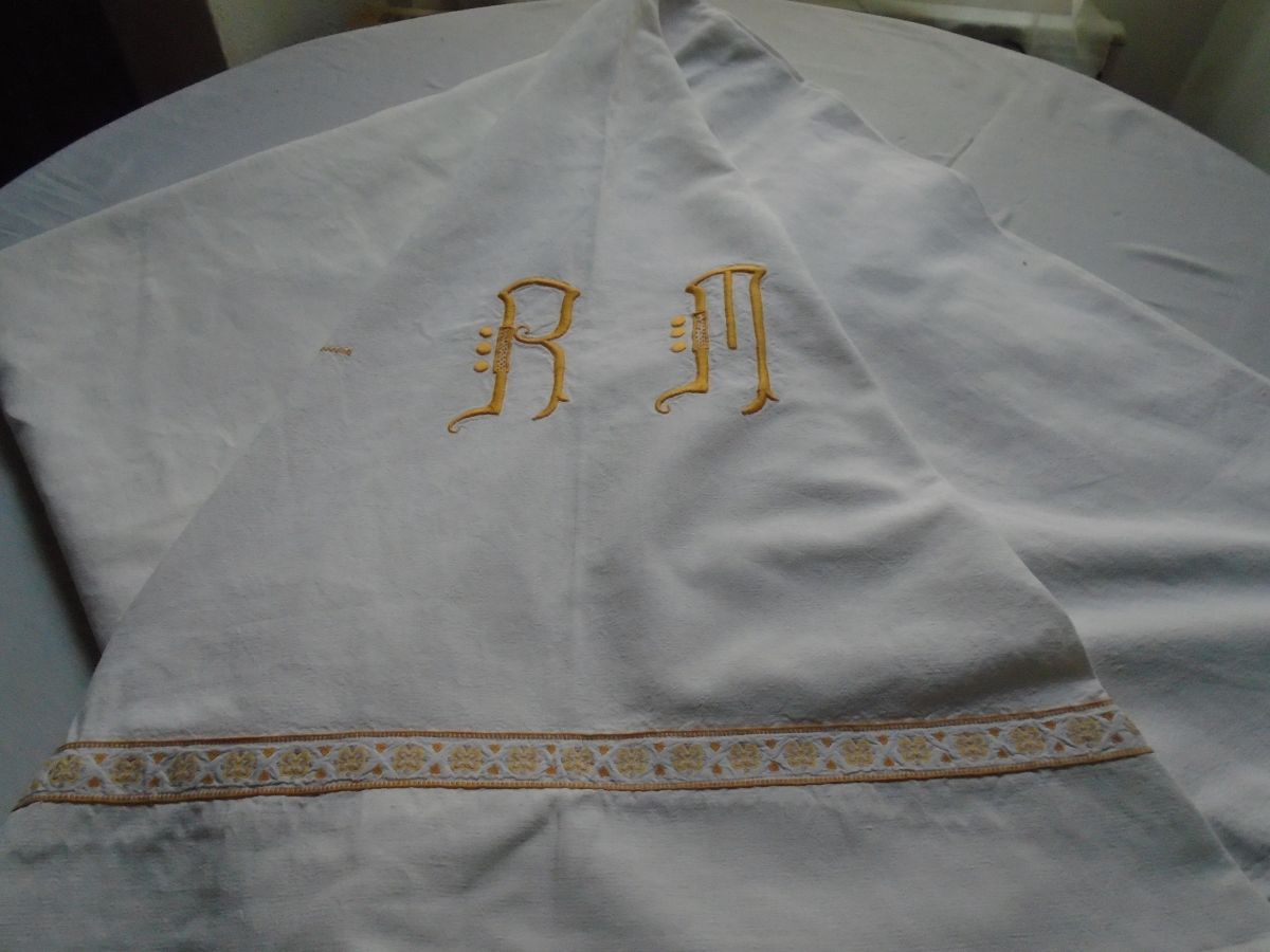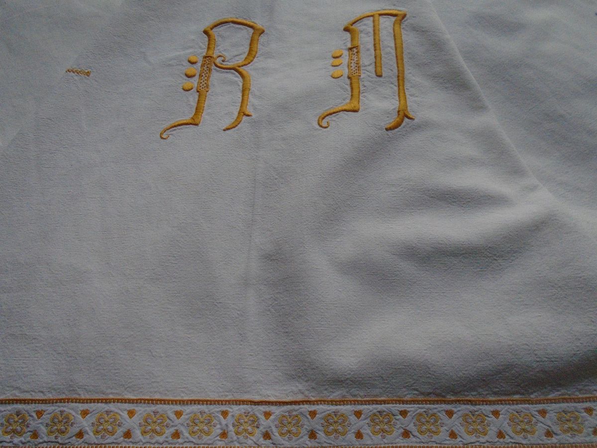 Grand drap plat en pur coton monogrammé en jaune d'or et galonné