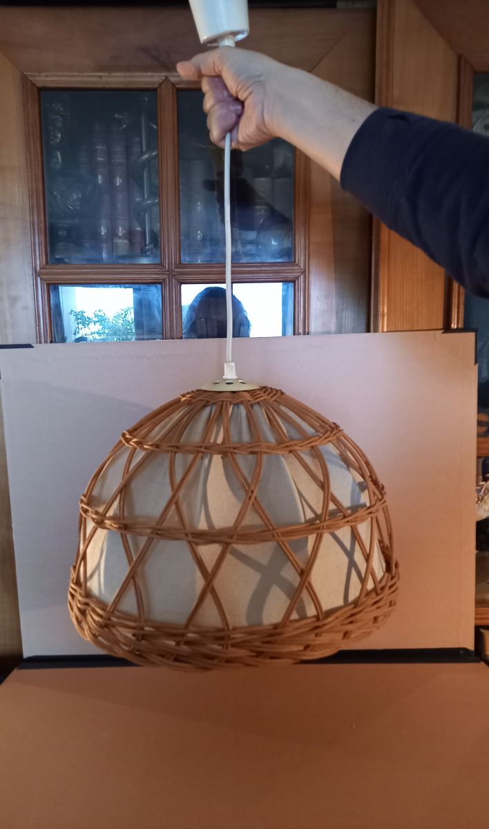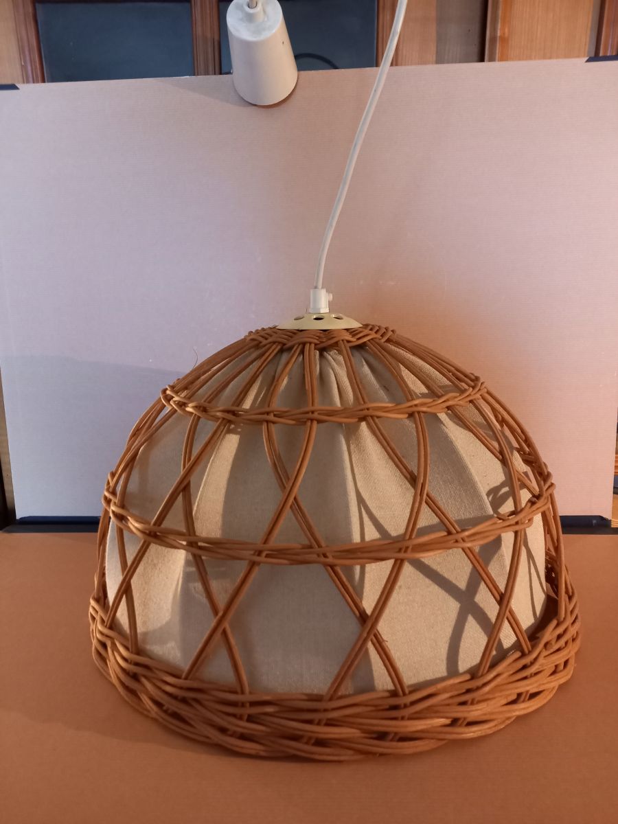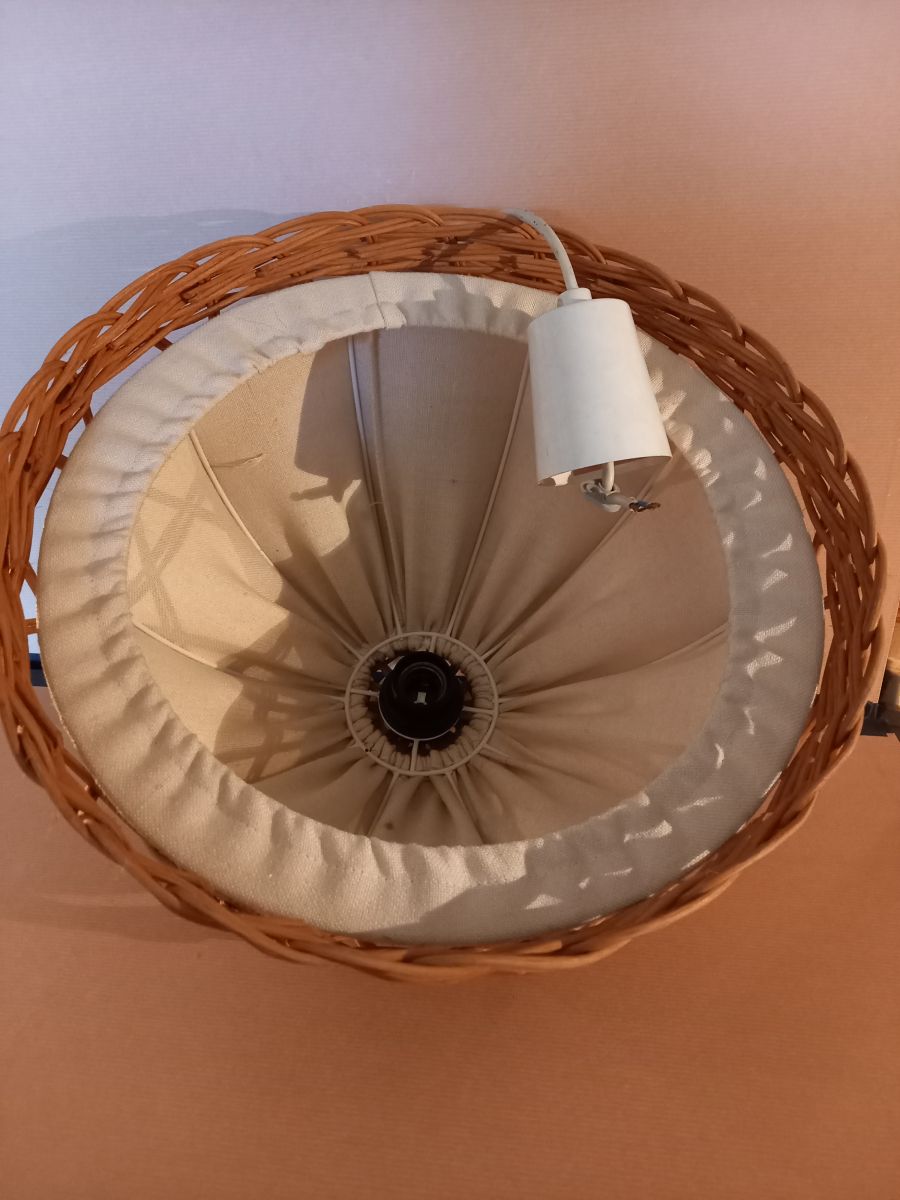 Suspension en rotin .Intérieur en tissu beige, épais et d'origine.