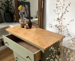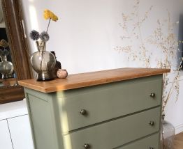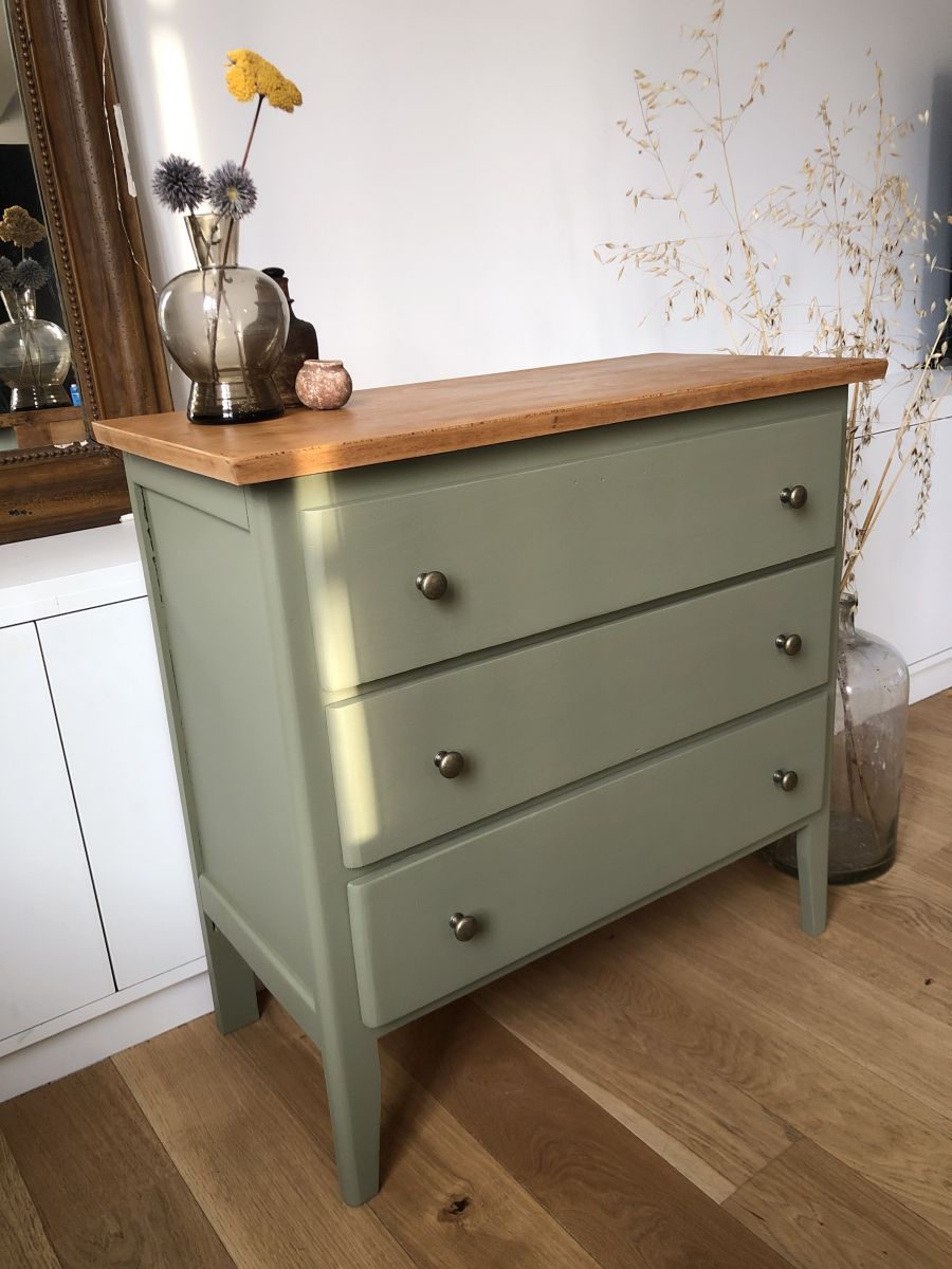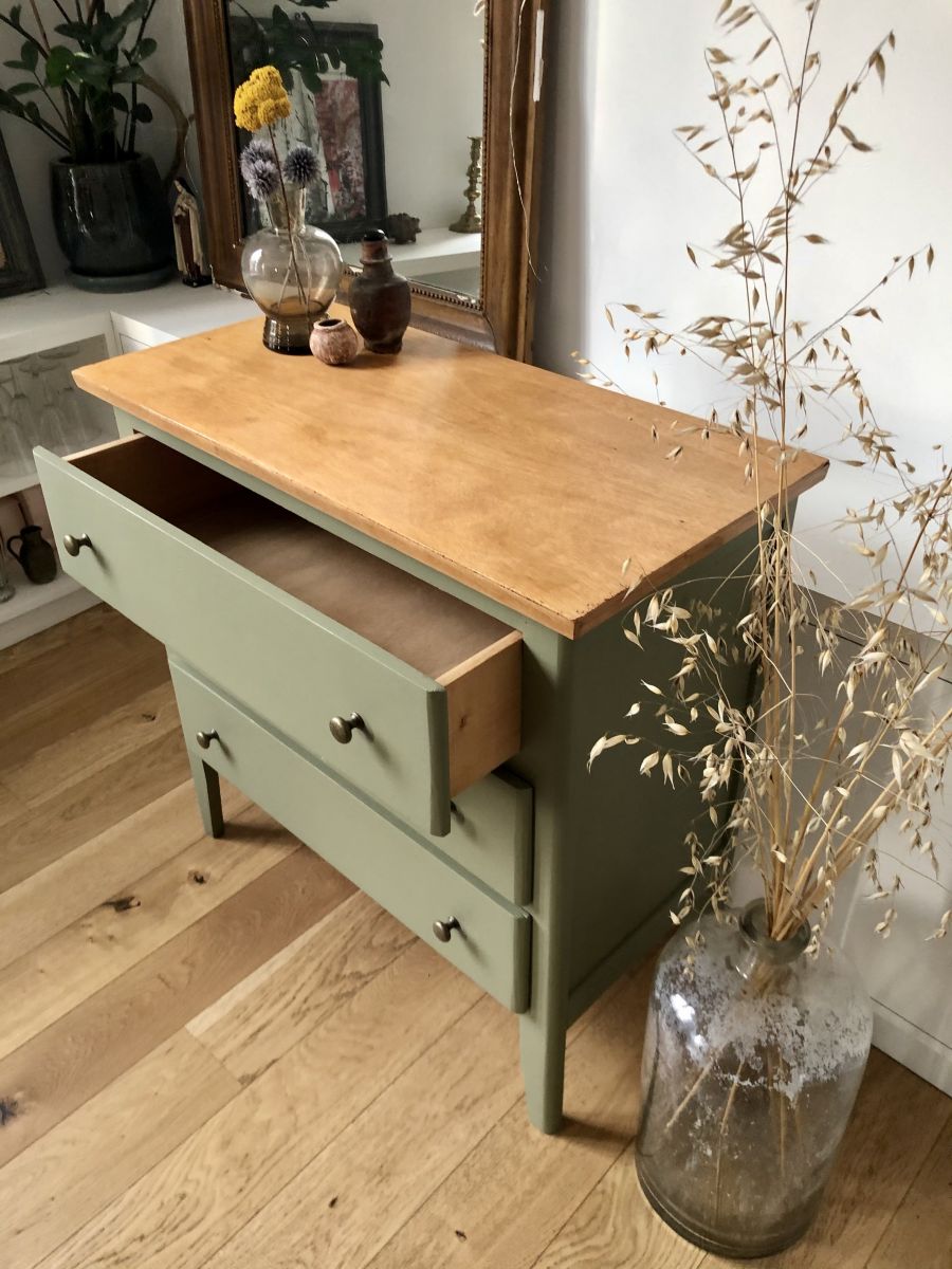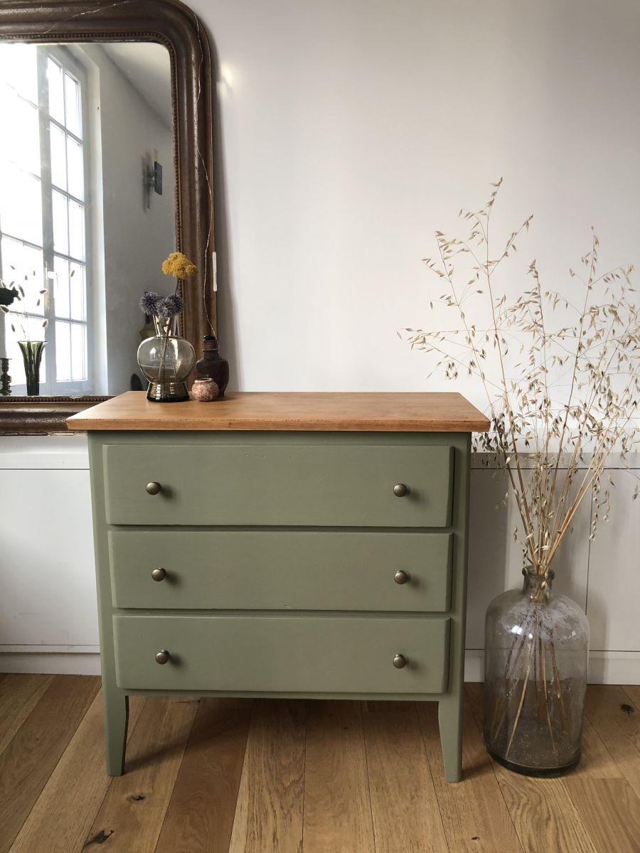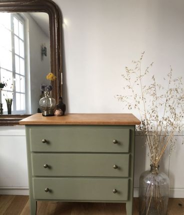 Elle a été mise en beauté avec la douce nuance "Vert Lichen" de chez Ressource.