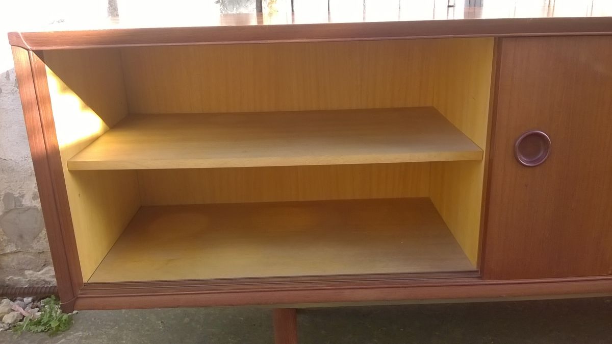 enfilade en teck scandinave 1960.deux porte coulissante et trois tiroir a droite de l enfilade.