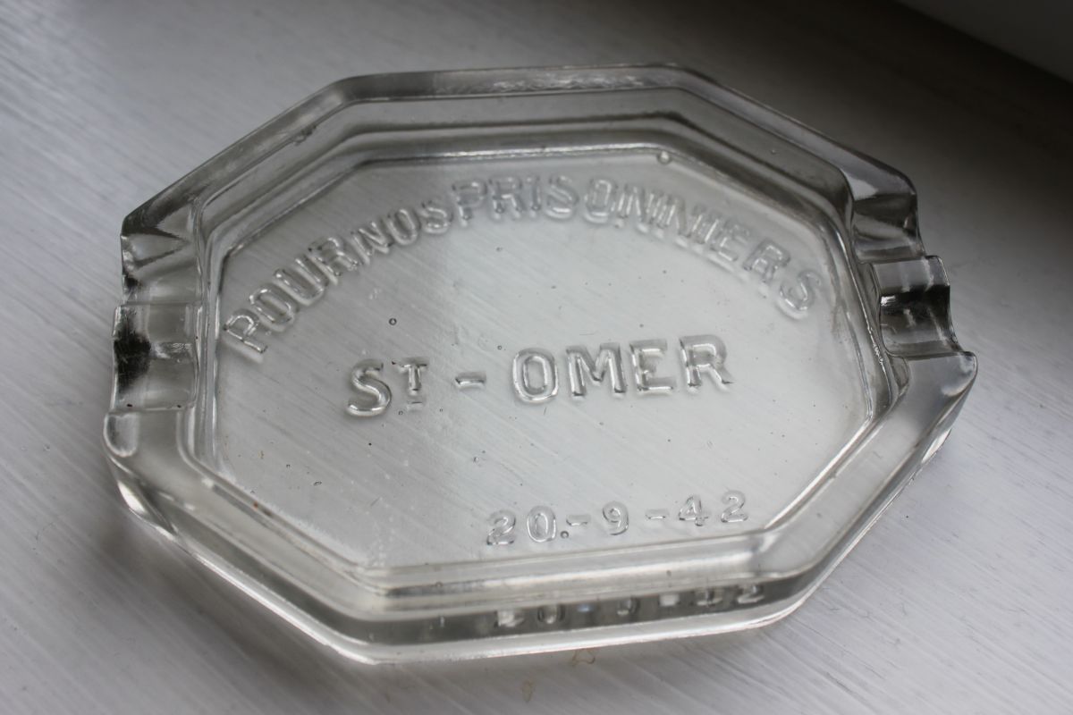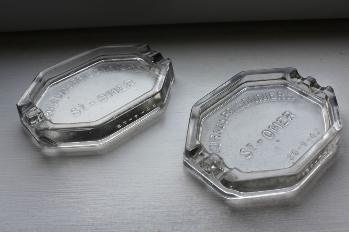 Inscriptions sur le fond des cendriers "Pour nos prisonniers - St Omer - 20/09/42"