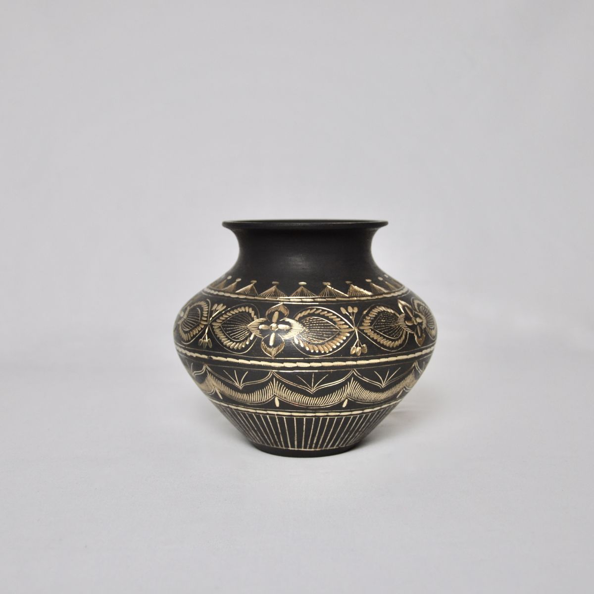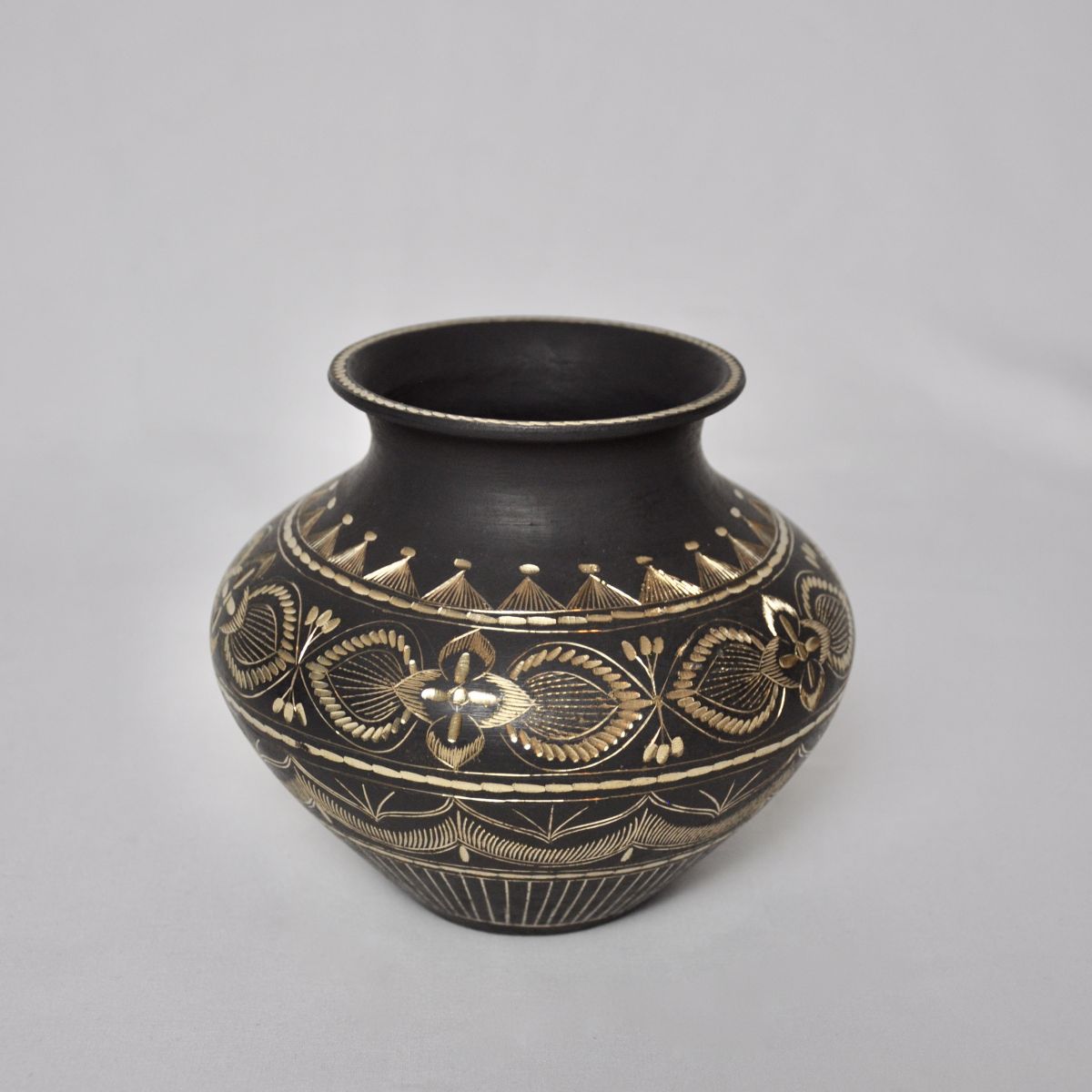 Descriptif : Pot en laiton, marron et doré jindabader ghoti