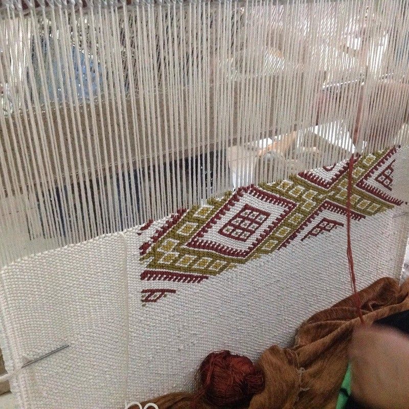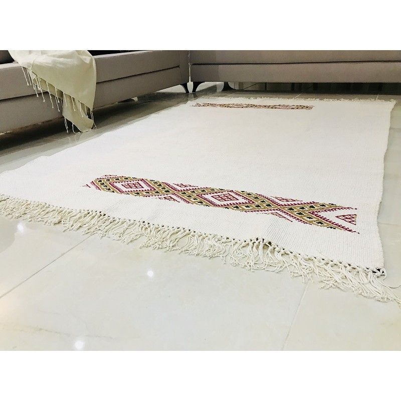 Tapis kilim fait main en soie couleur blanc crème