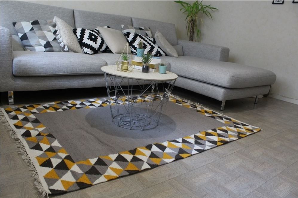 Tapis kilim fait main en laine gris