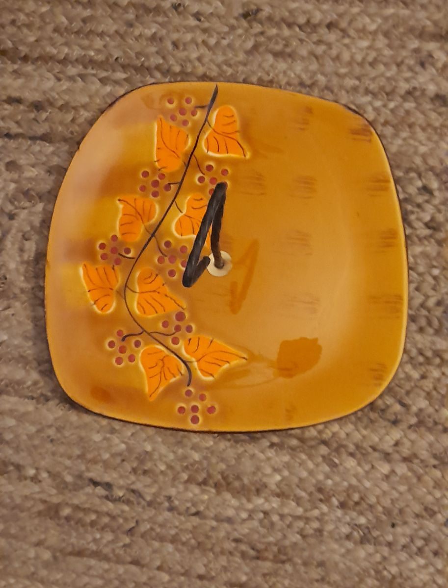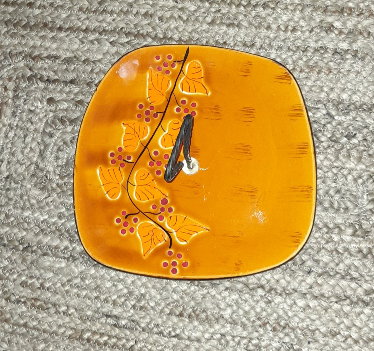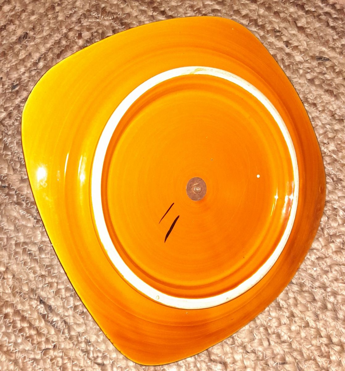 Plat de service style Vallauris, belle couleur jaune moutarde des seventies.