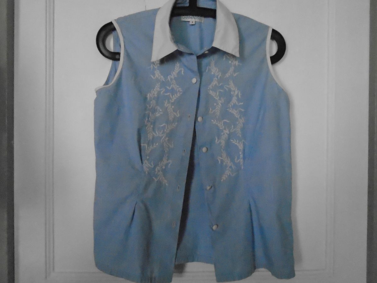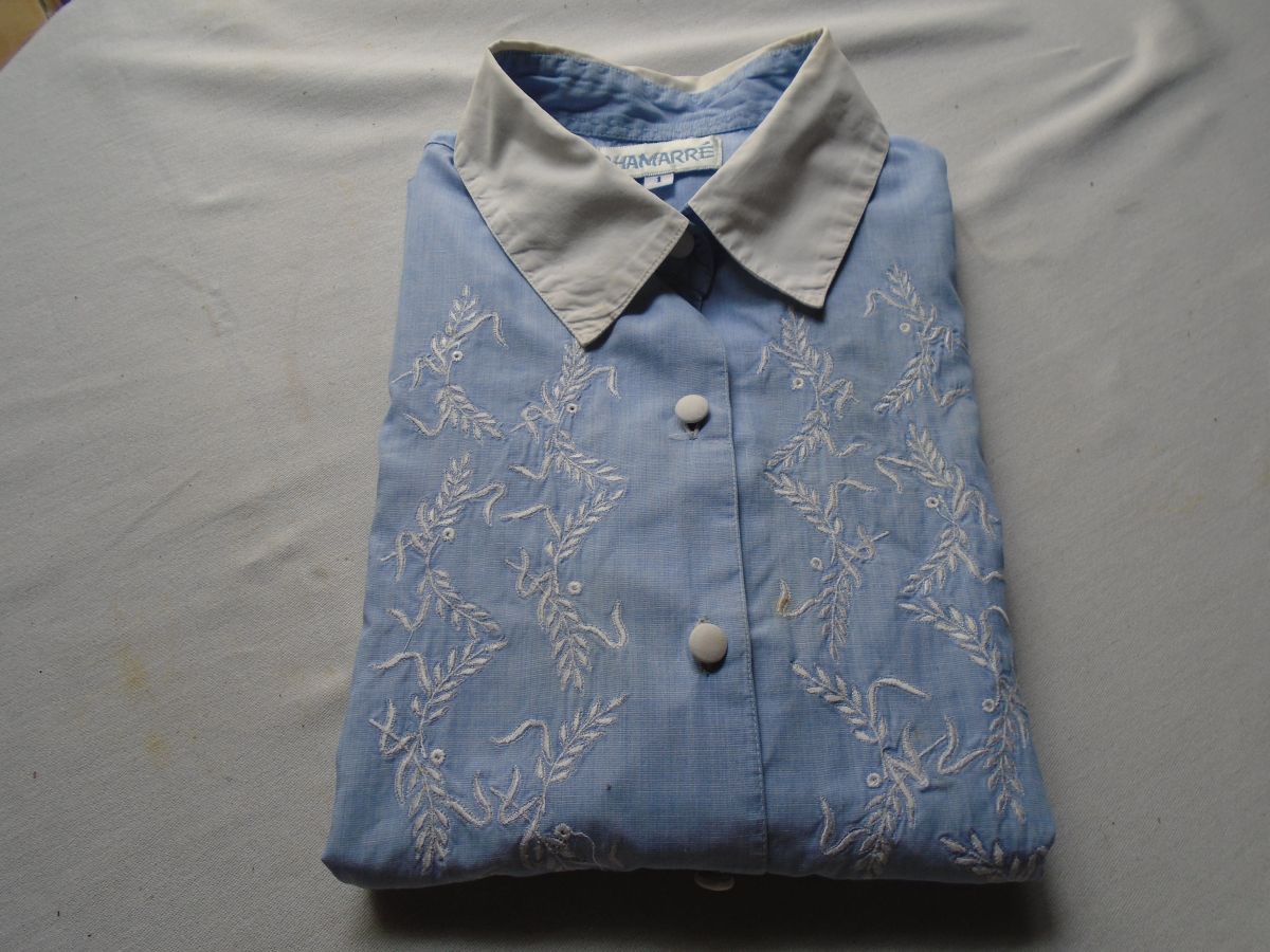 Chemisier en coton fin de très belle qualité, bleu ciel et broderies blanches