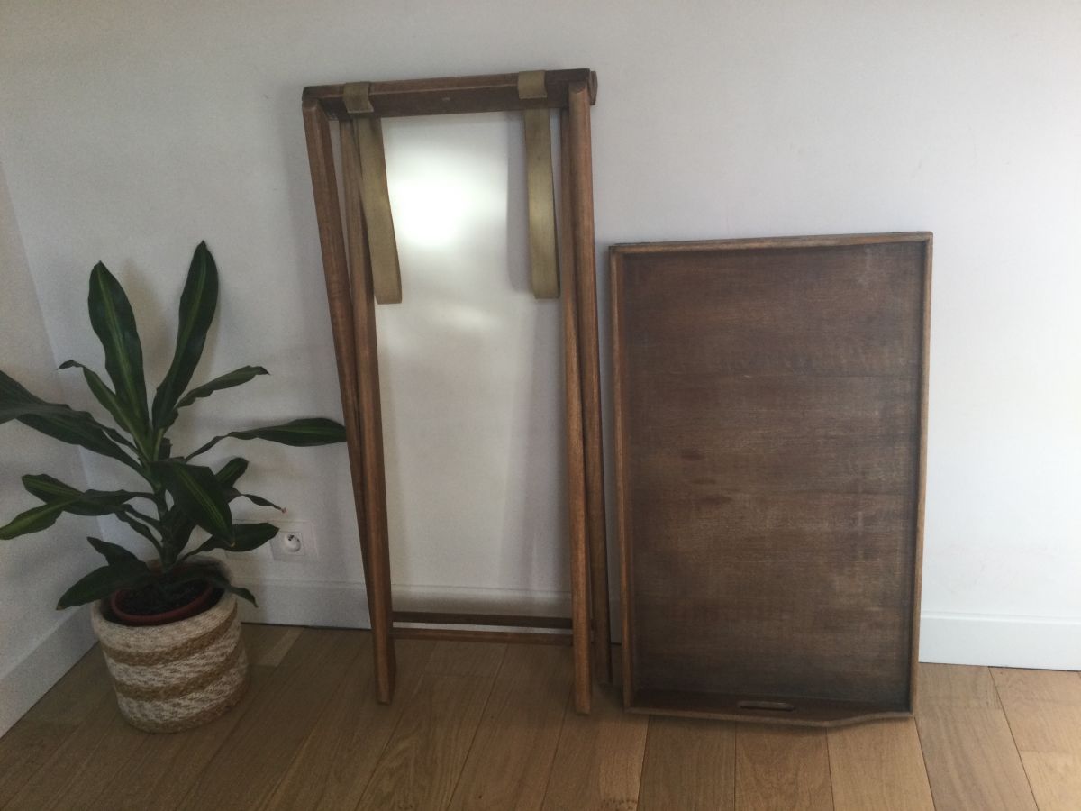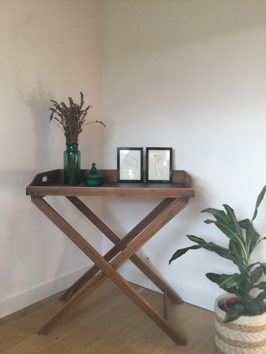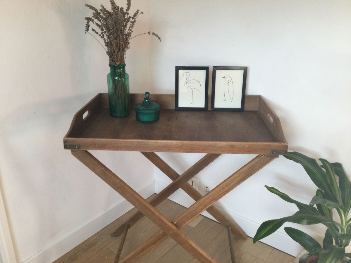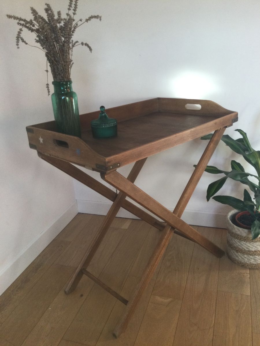 Table desserte vintage pliante en bois plateau amovible