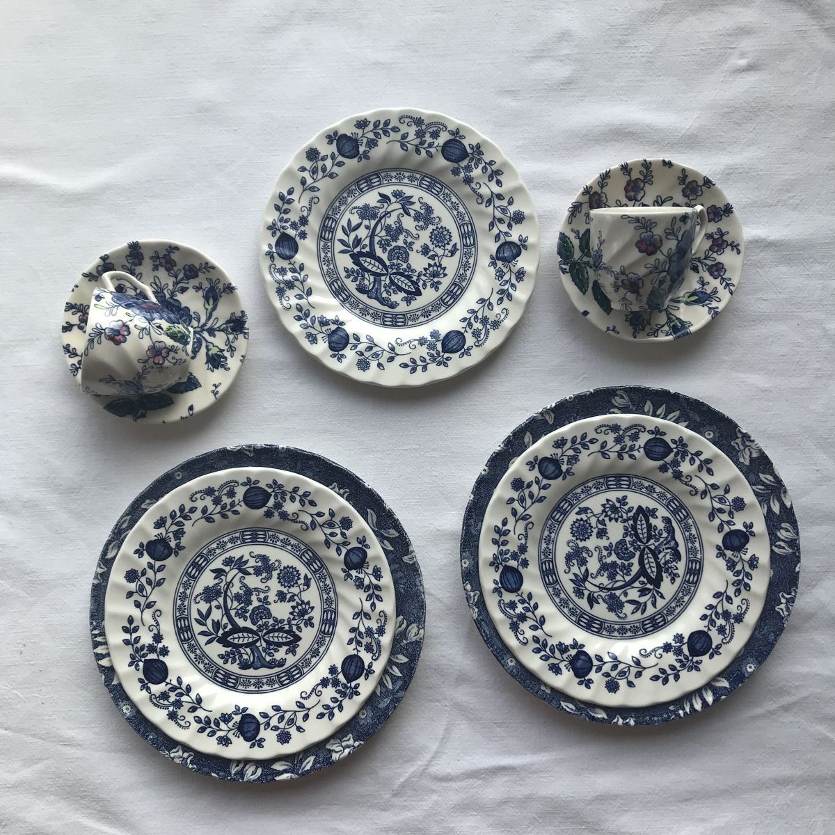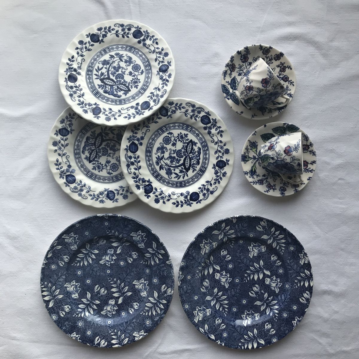 On trouve énormément de porcelaine classique anglaise à motifs fleurs dans de grandes maisons réputées comme CHURCHILL, WINDSOR, QUEEN’S Royal garden, ROYAL ALBERT, LADY CARLYLE .