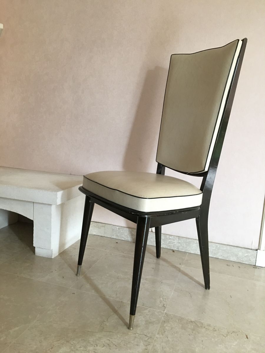 La structure des meubles et des chaises est en hêtre massif teinté en noir.