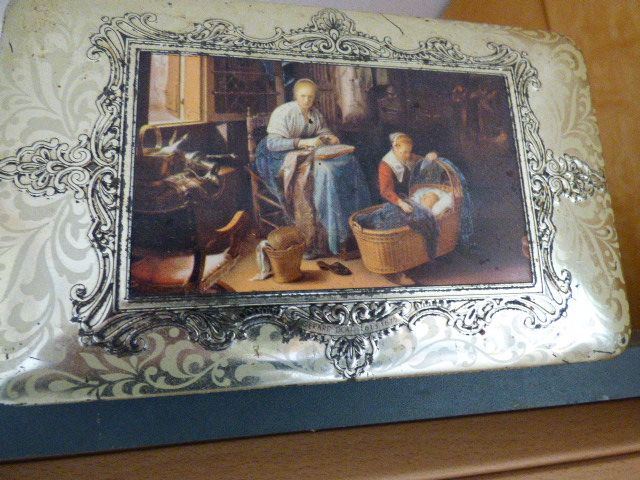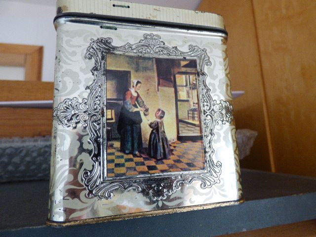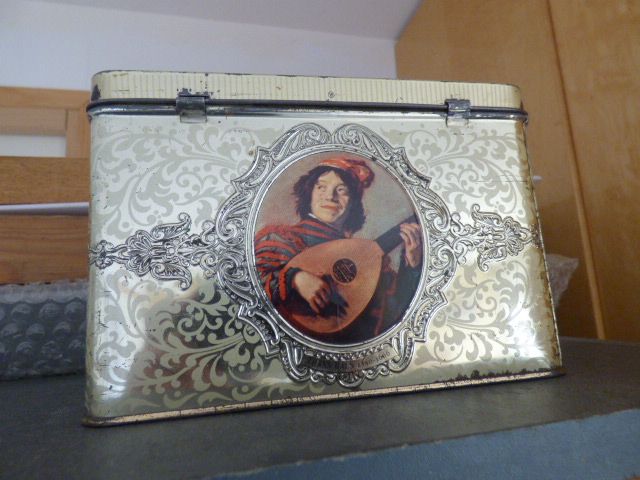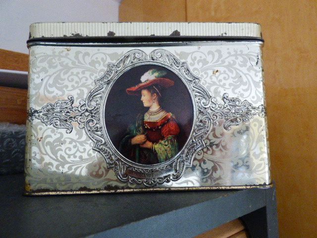 BOITE ANCIENNE METAL "50" Décor 18 ième