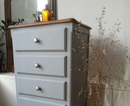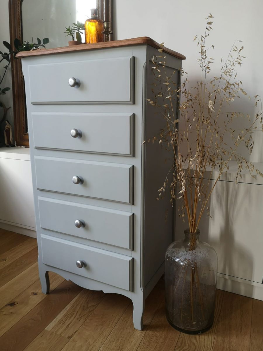 Charmant et élégant chiffonnier des années 50 avec de jolis pieds en biais.