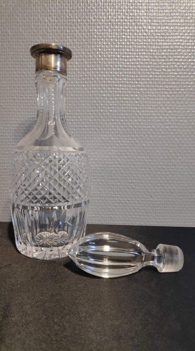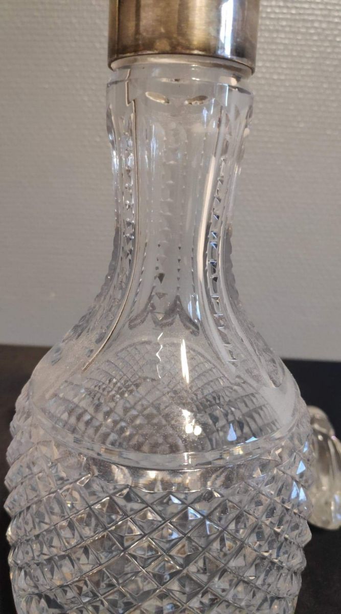 carafe en cristal ciselé et argent avec bouchon
