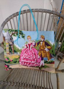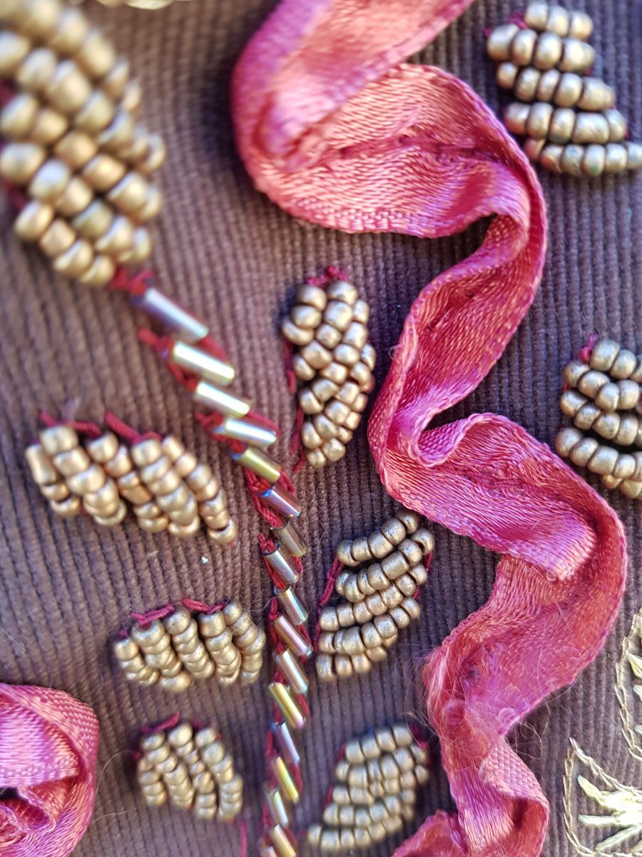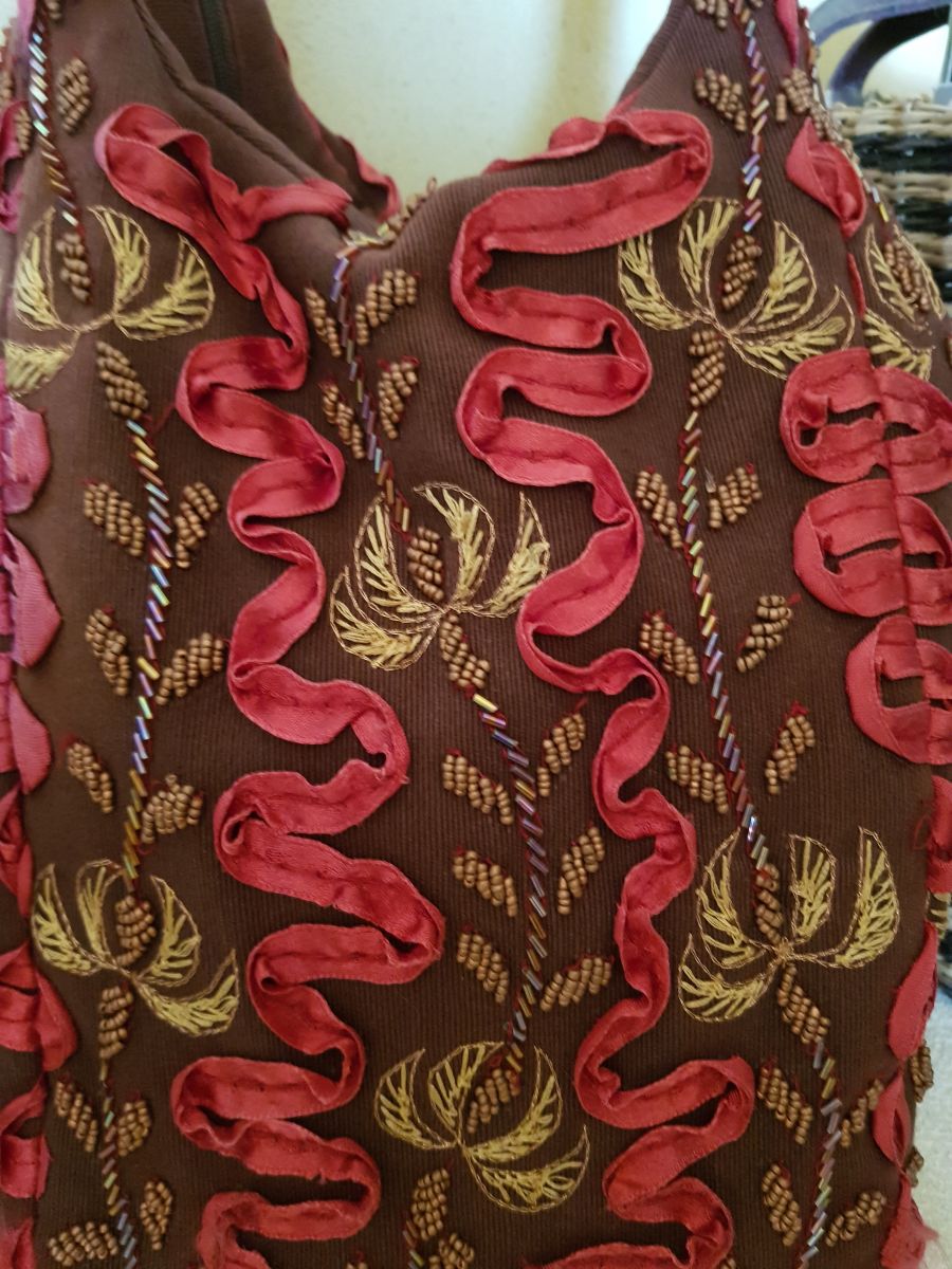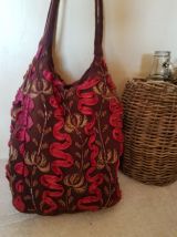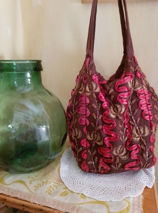 Magnifique sac bohème, avec petites perles dorées et rubans de velours