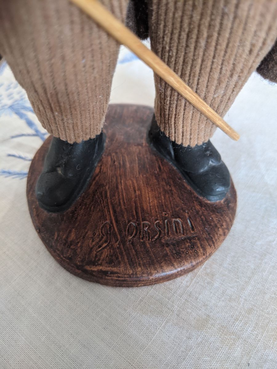 Grand santon estampié Gilbert Orsini "Le Berger à l’Agneau". 23 cm de haut. Vintage des années 70, fait à la main. Une magnifique pièce aux traits de visage expressifs, idéale pour une collection ou pour la décoration. En très bon état malgré les marques du temps.