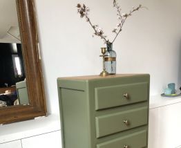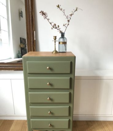 Elle a été mise en beauté avec la douce nuance "Olive" de chez Ressource.